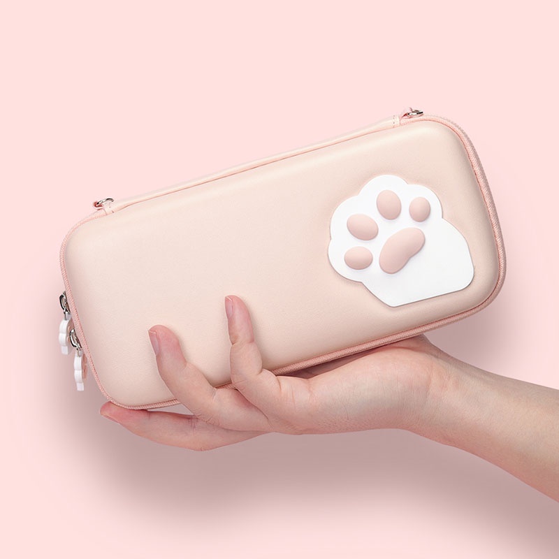 Rosa Bonito Caso Da Pata Do Gato Compatível Com Nintendo Switch/OLED-Portátil Diskoshell Magro Viagem Transportando fit-Console & Acessórios Jogo