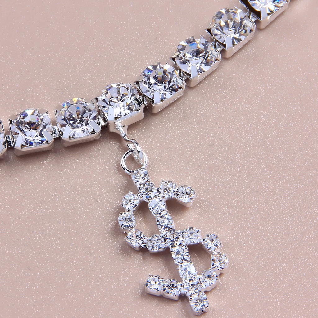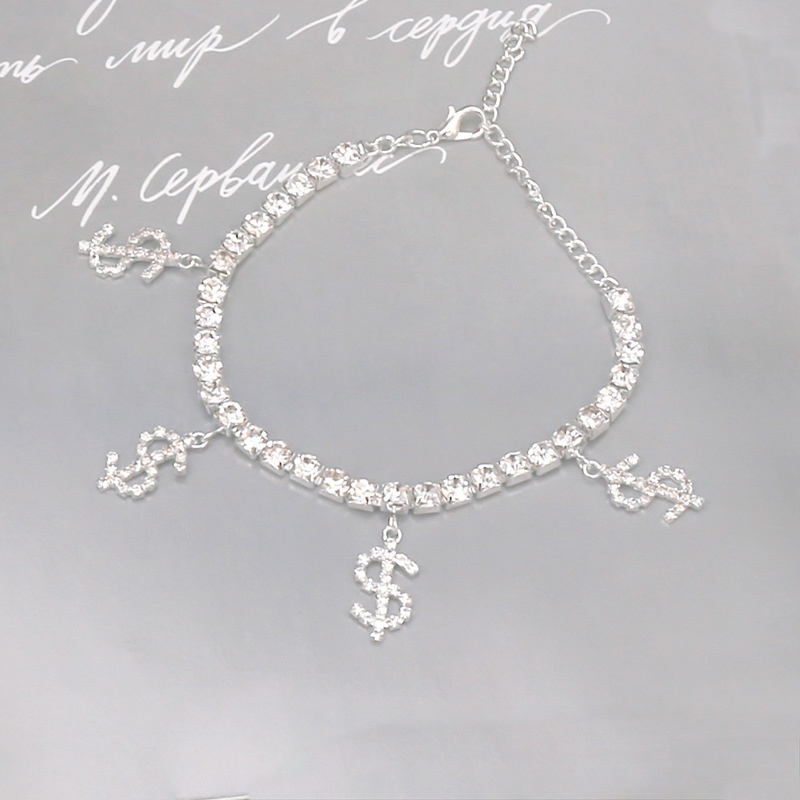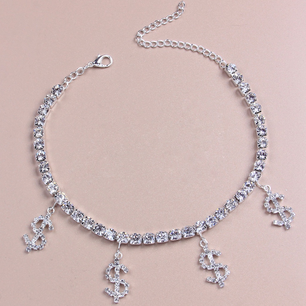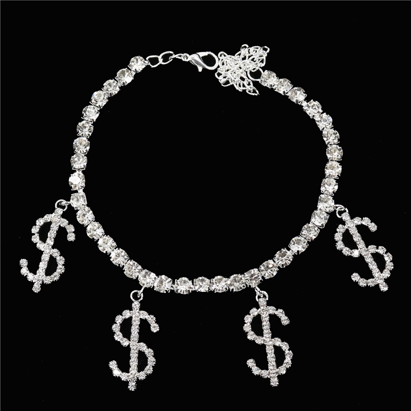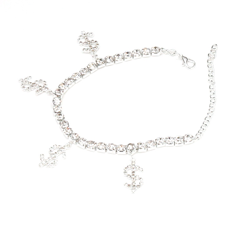 Moeda Brilhante $ Símbolo Branco Simples Menina Tornozeleira Prateada