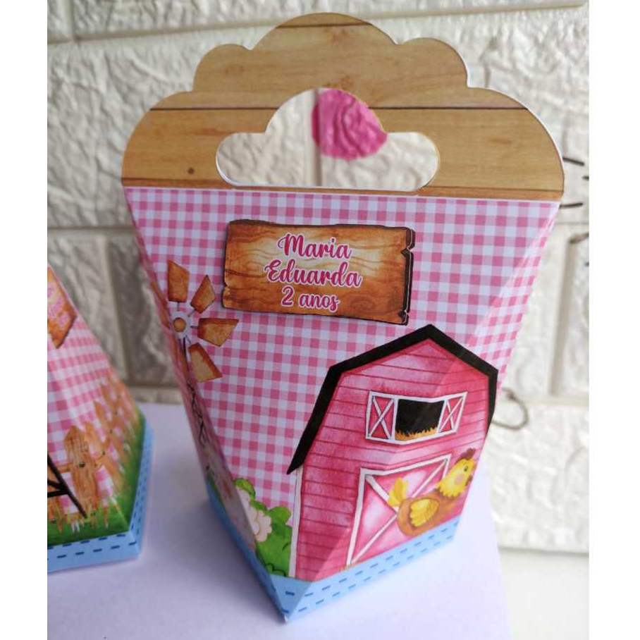 Caixas Personalizadas - Lembrancinha para Festa Infantil - Aniversário - Fazendinha Rosa Menina