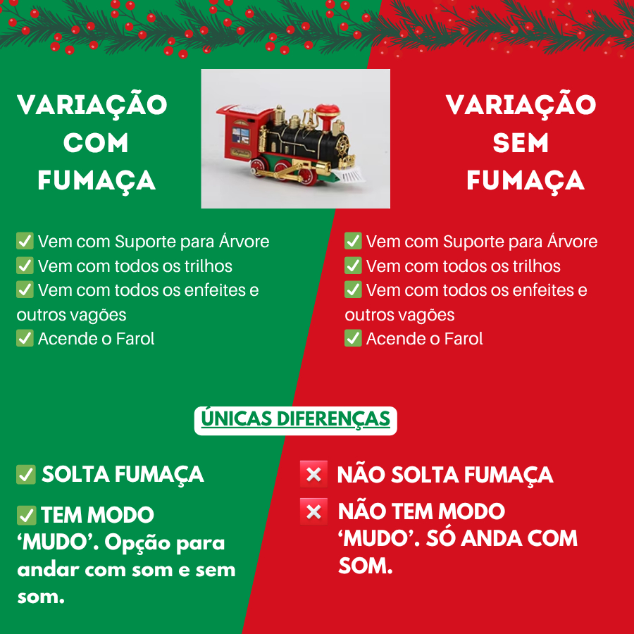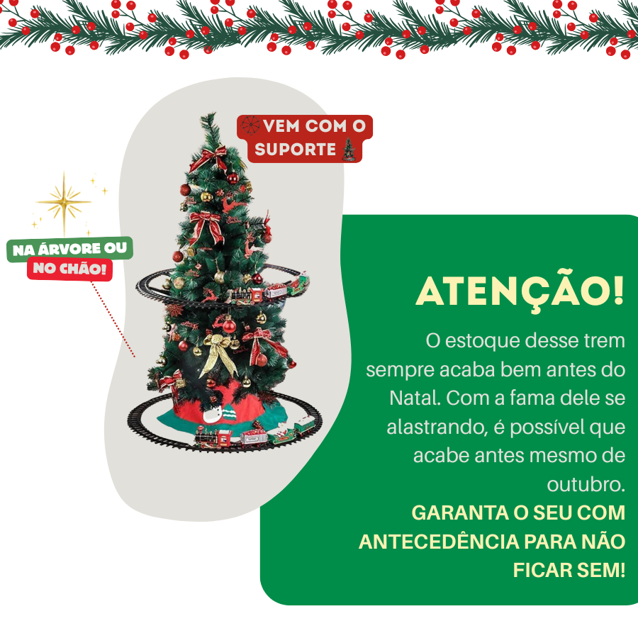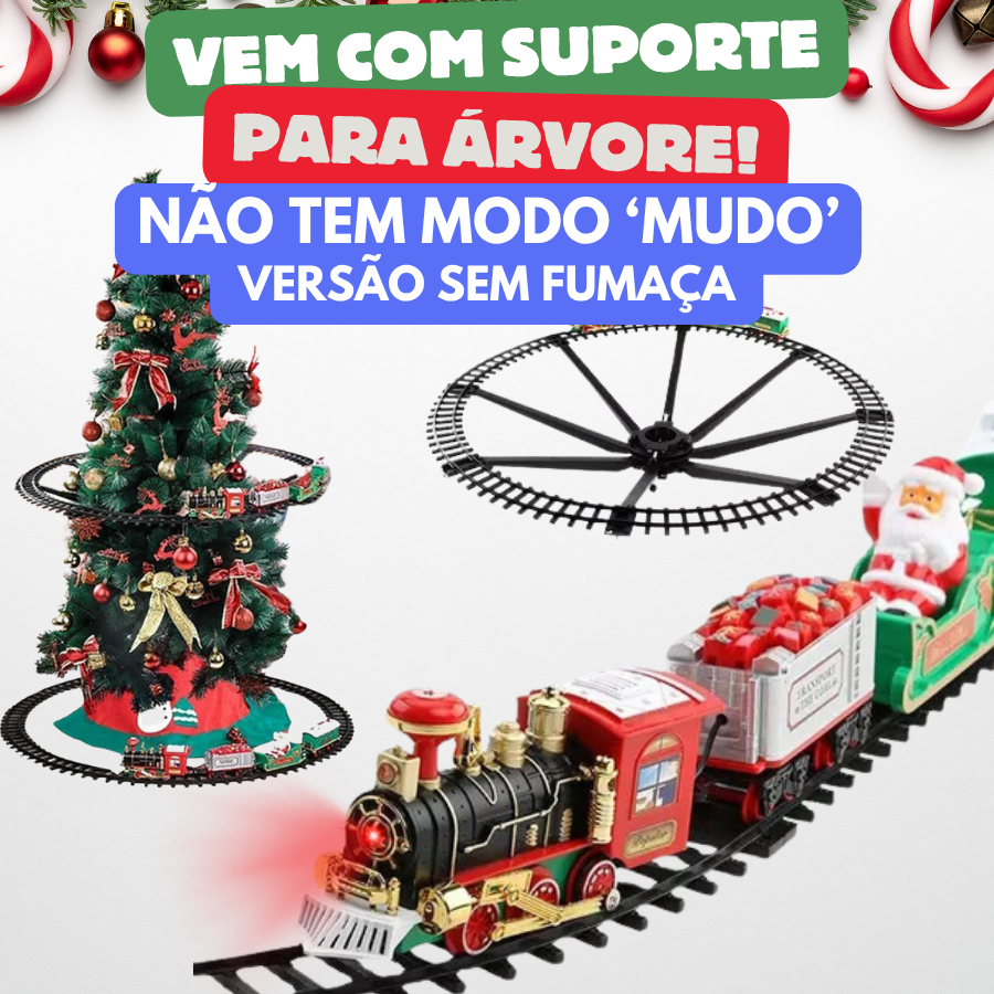Trem Elétrico Ferrorama Árvore Natal Locomotiva Solta Fumaça Original Pista no Chão ou na Árvore Decoração Mágica