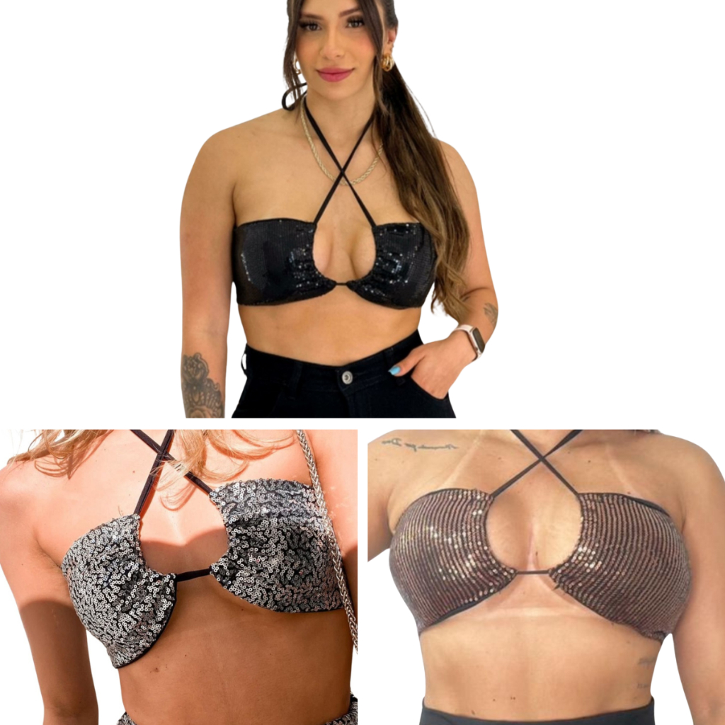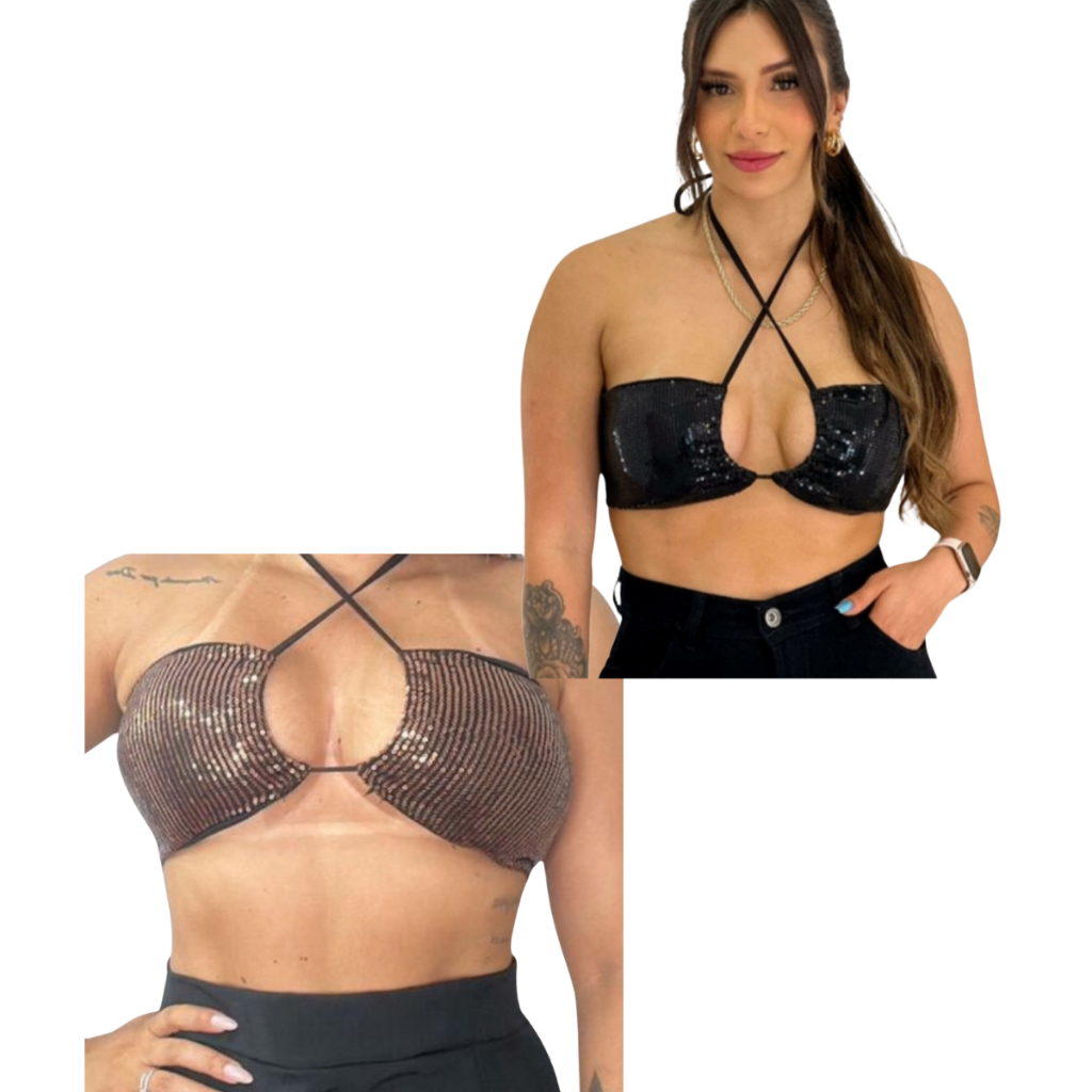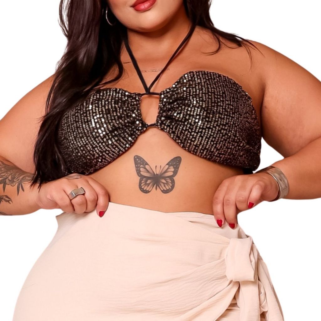 Cropped top Sutian Paetê tendência balada, carnaval, festa plus size e Slim P ao G1 - Cacau