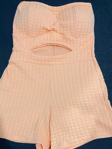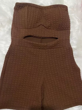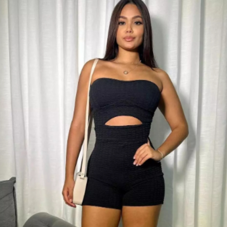Macacão Macaquinho Curto Tomara que Cai com Abertura na Frente Tecido BUBBLE blogueira Jardineira