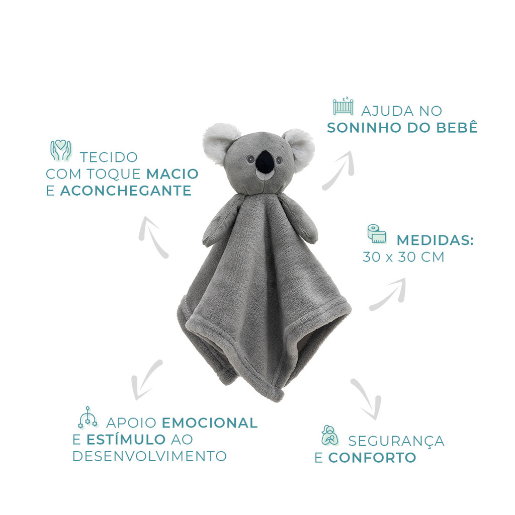 Naninha Coala Fofinho Loani Cinza Bebê com Prendedor de Chupeta