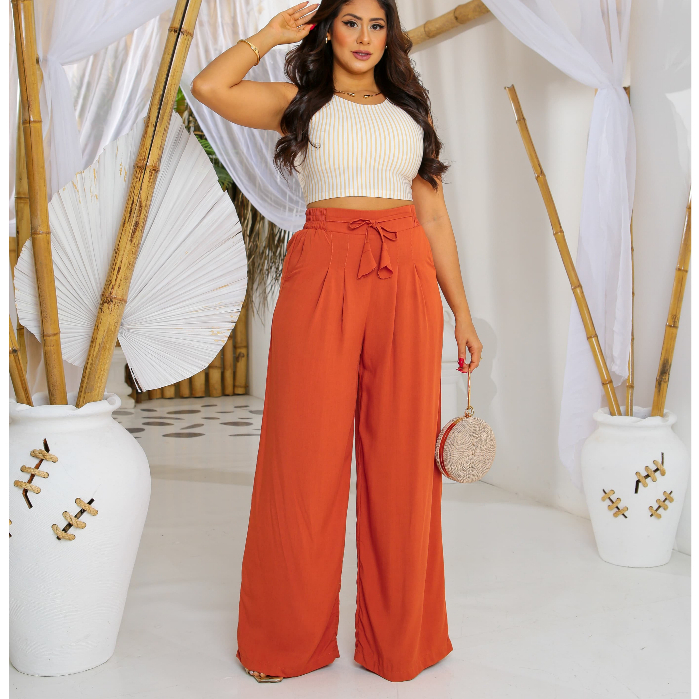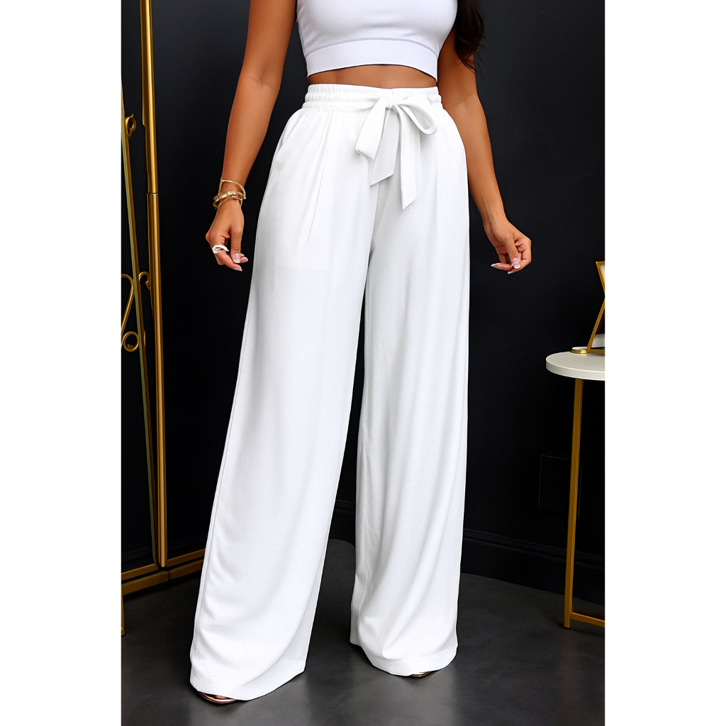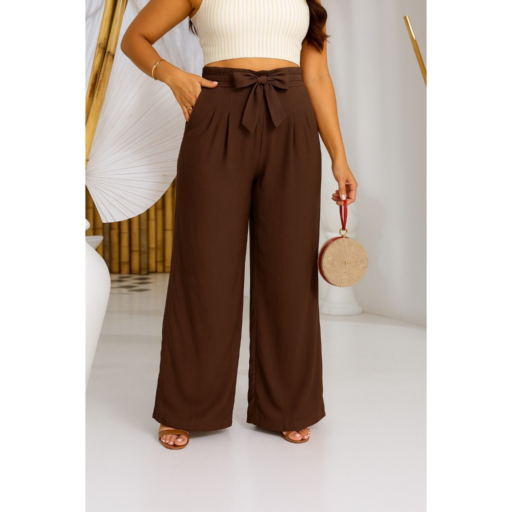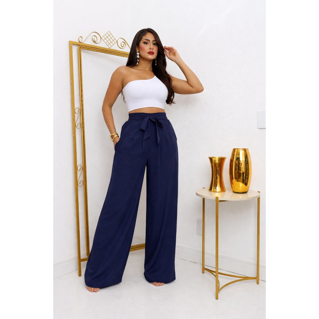 Calça Pantalona Viscolinho Branca Feminina con Bolsos e Forro Look Elegante e Confortavel
