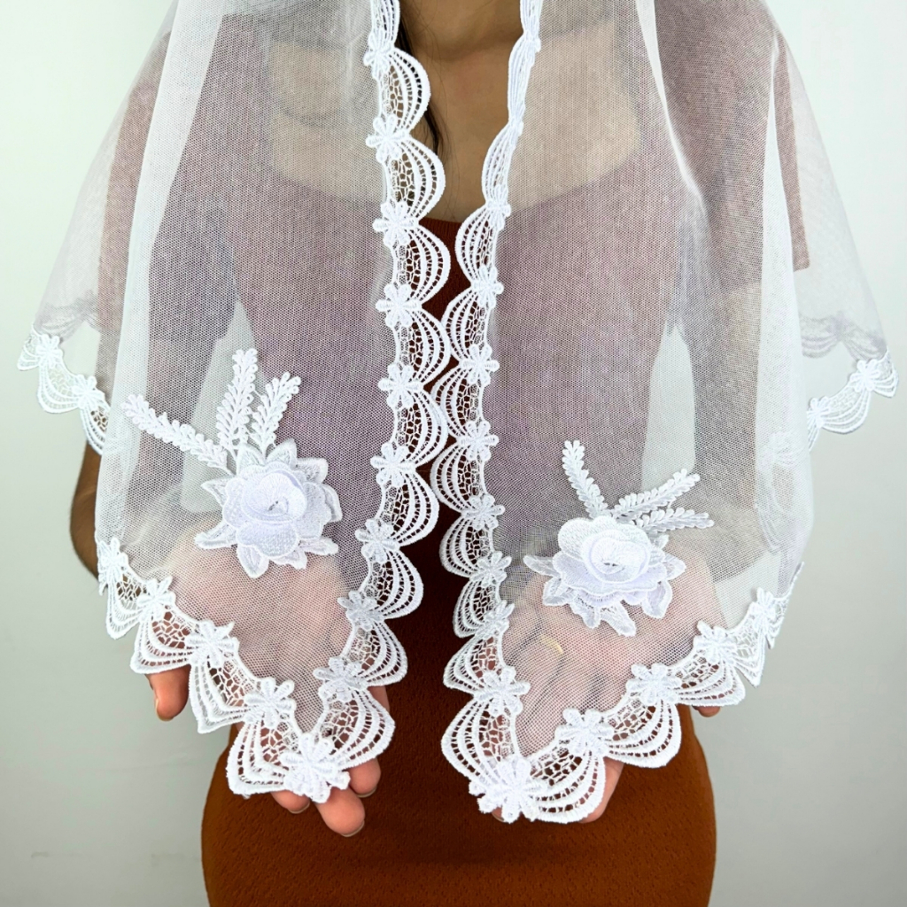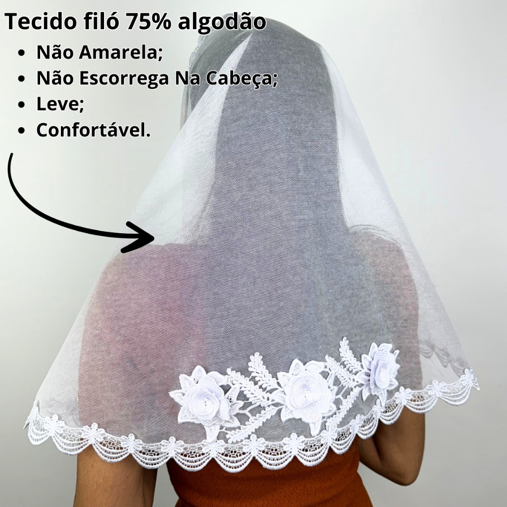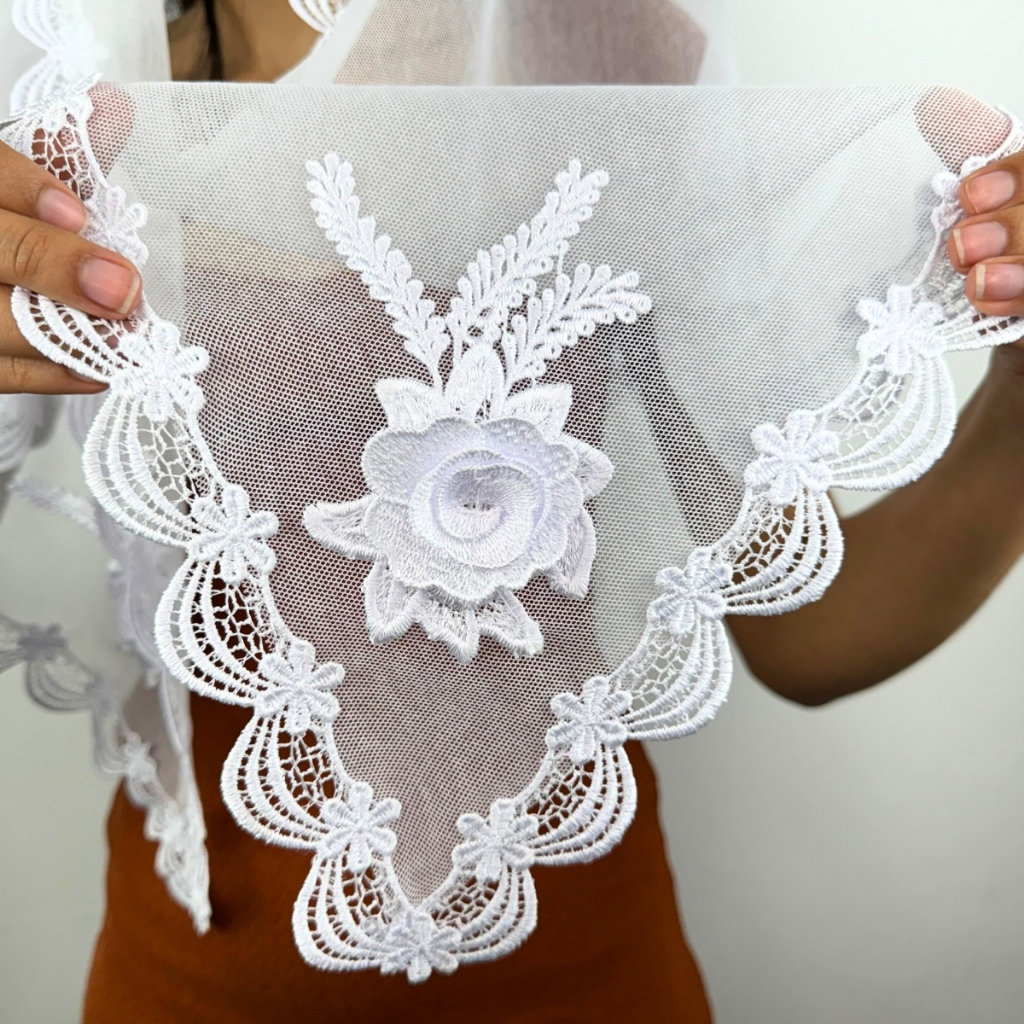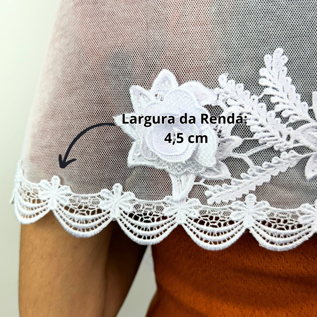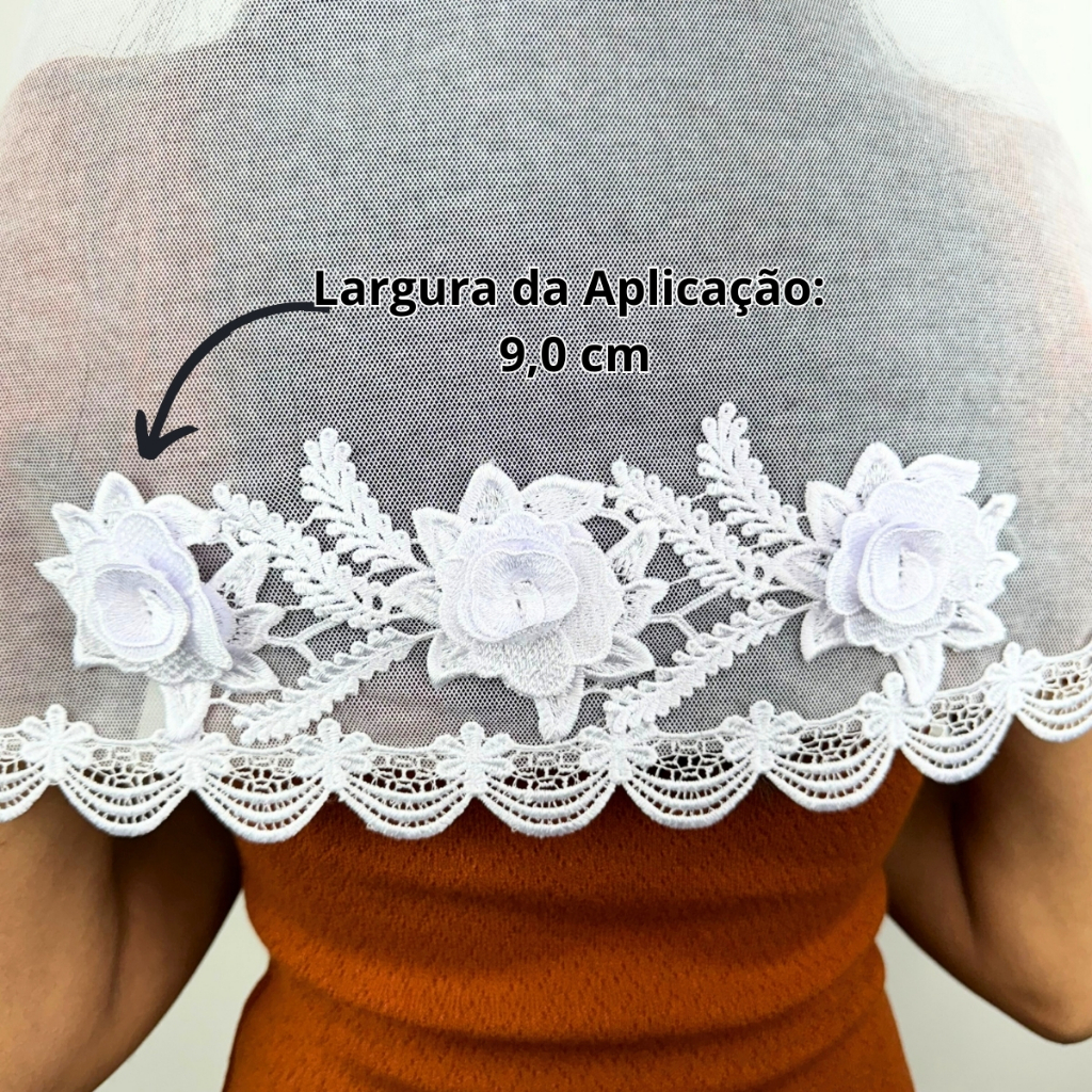 Véu CCB Renda Guipir Média Luxo Com Aplique Floral 3D