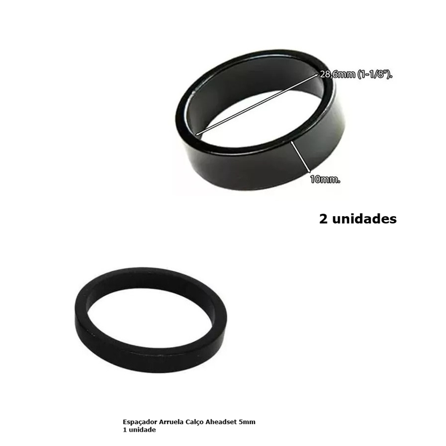 Kit 3 Arruela Bike Calço Espaçador Aheadset (2 unid 10mm e 1unid 5mm)