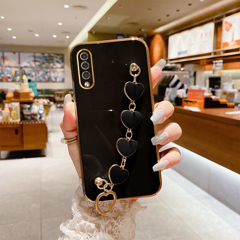 Capa Celular Samsung A30S/A50/A50S/A750 /A7 2018 Com Pulseira De Amor Para Câmera De Borda Reta Deusa Luxo