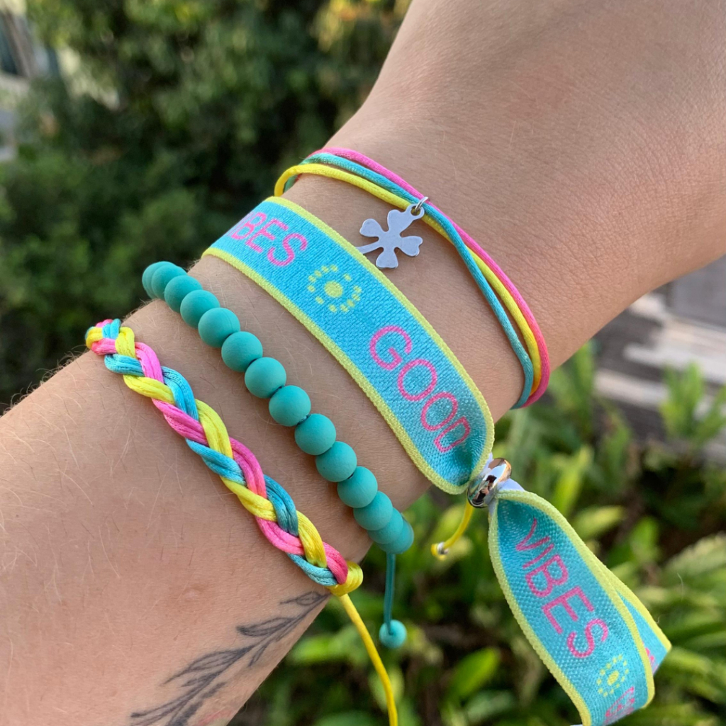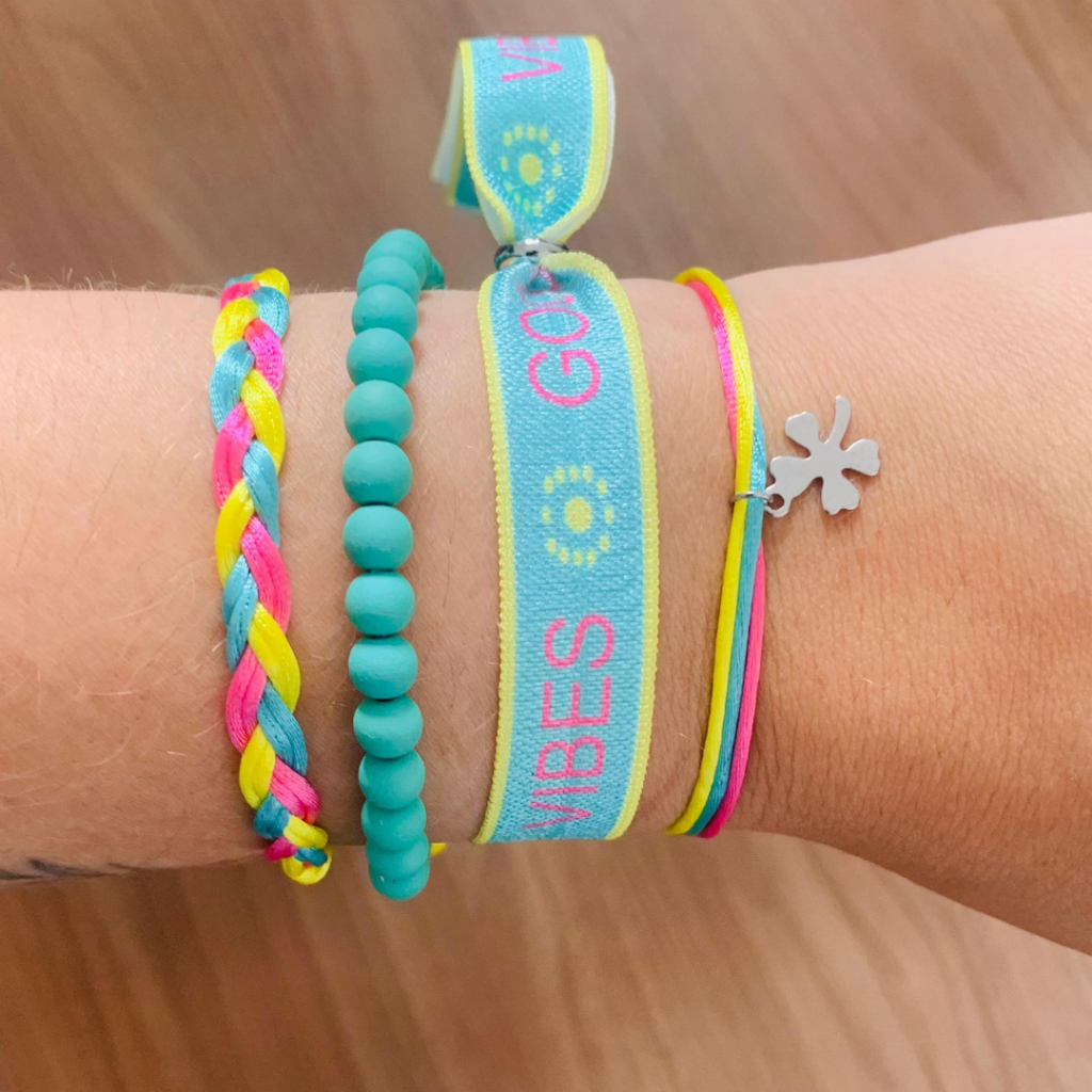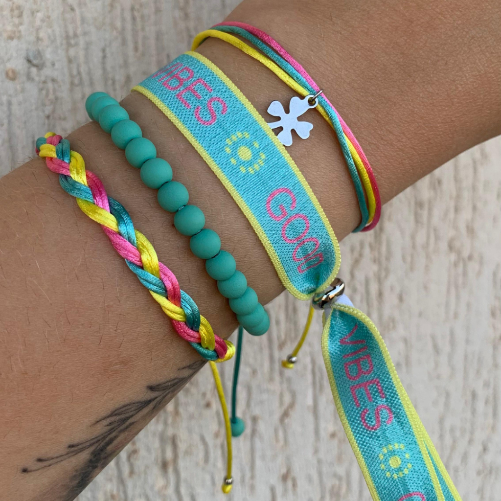 Mix Good Vibes em aço inox - Aço inoxidável - Mix de Pulseiras - Pulseiras reguláveis