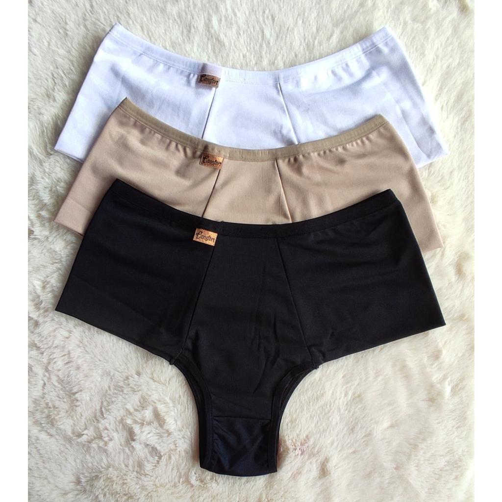 Kit 3 Calcinhas Cintura Alta Microfibra Lateral Dupla Leve Compressão