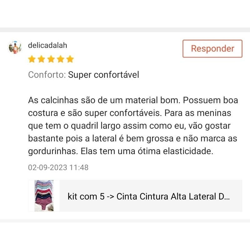 kit com 5 calcinhas cinta cintura alta e lateral dupla com leve compressão.