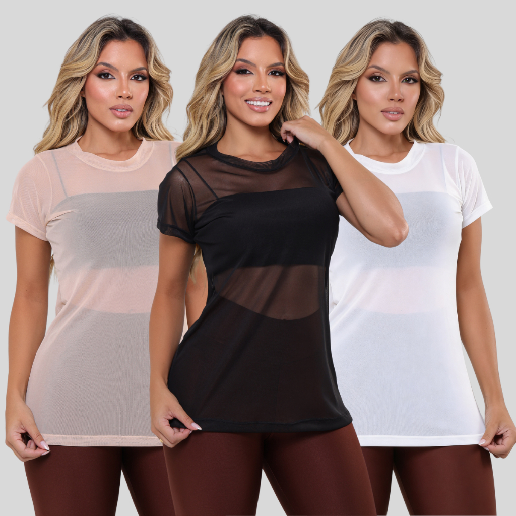 Kit 3 Regata Feminina Moda Academia Transparente Fitness Tule Luxo Casual