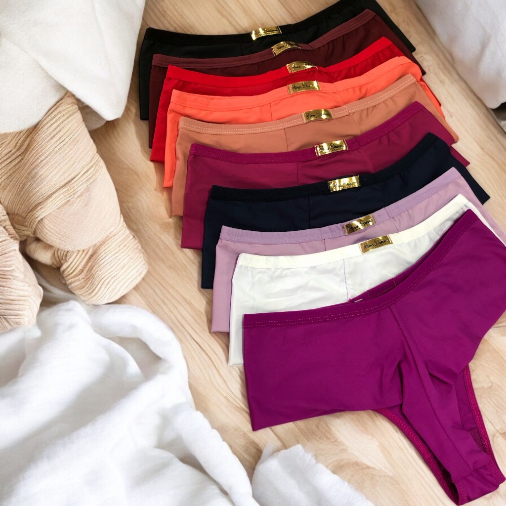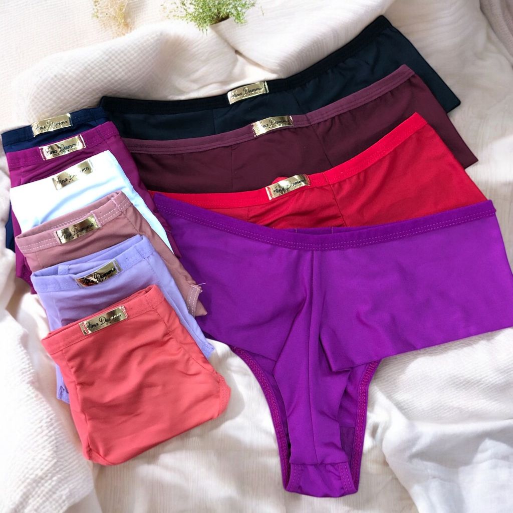 kit com 5 calcinhas cintura alta microfibra fio duplo pala alta