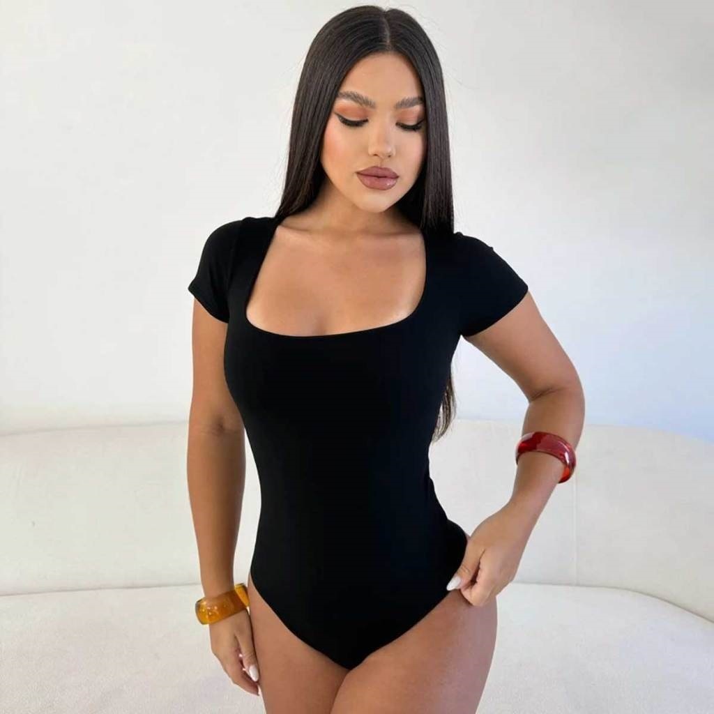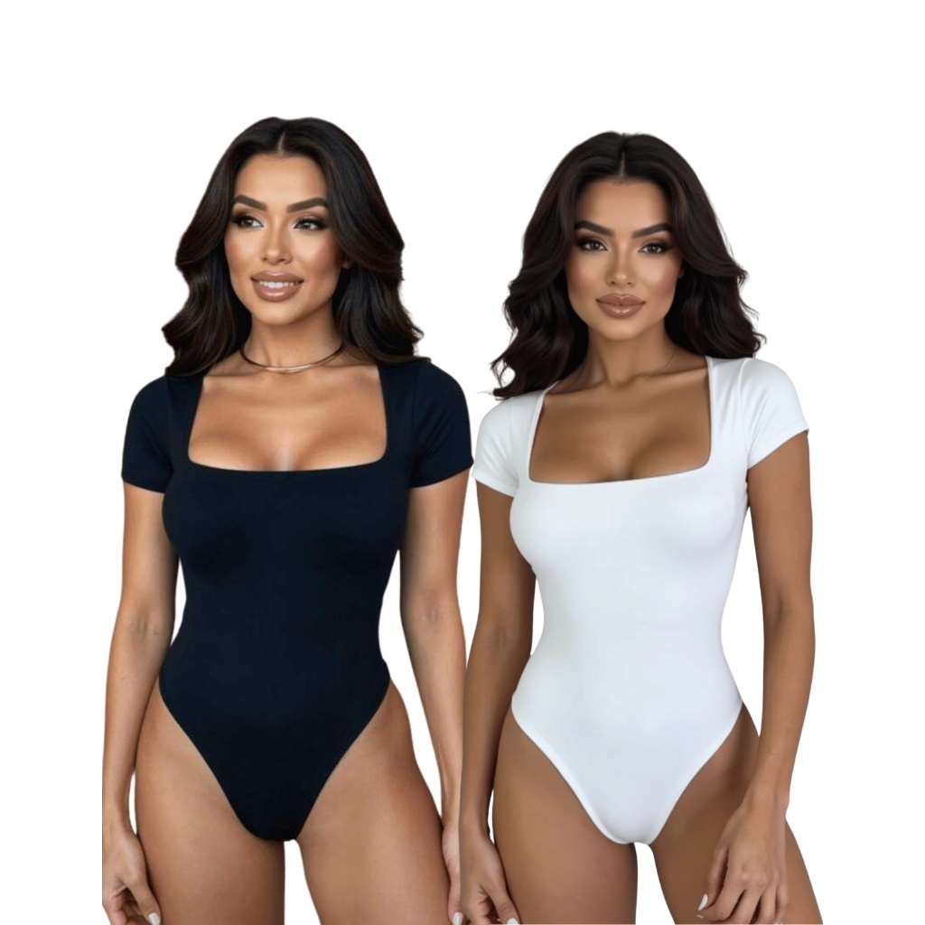 KIT 3 Body Feminino Manga Curta Decote Quadrado Forro Duplo Suplex Moda Verão