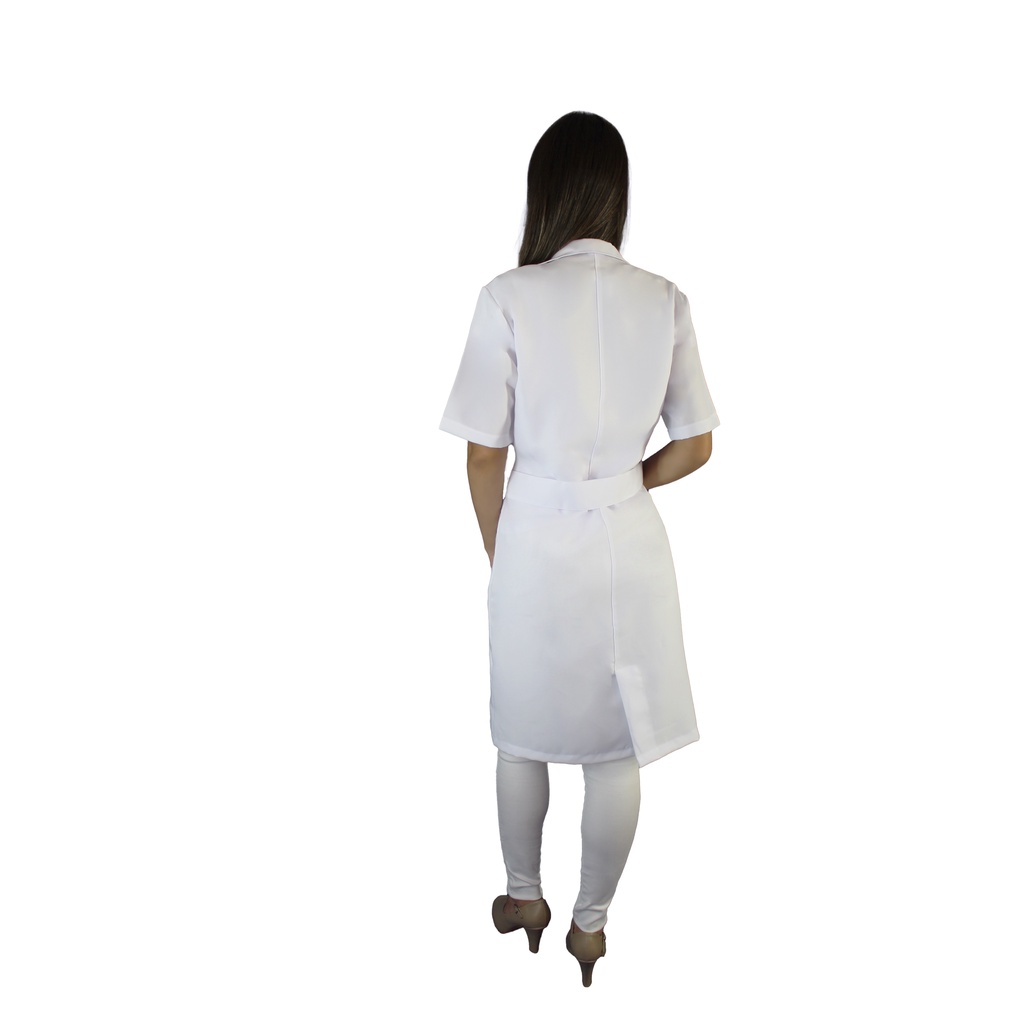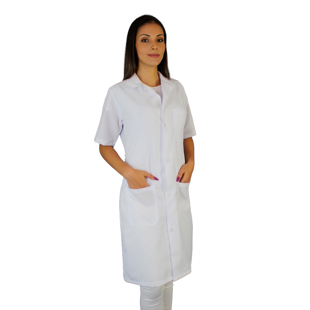 Jaleco Feminino de Oxford Branco Manga Curta com Três Bolsos