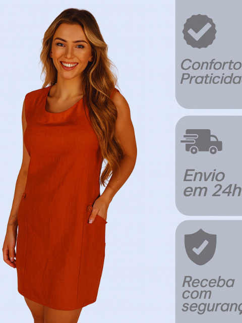 Vestido de Linho Feminino com Bolso e Botão