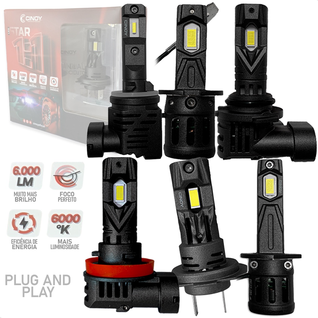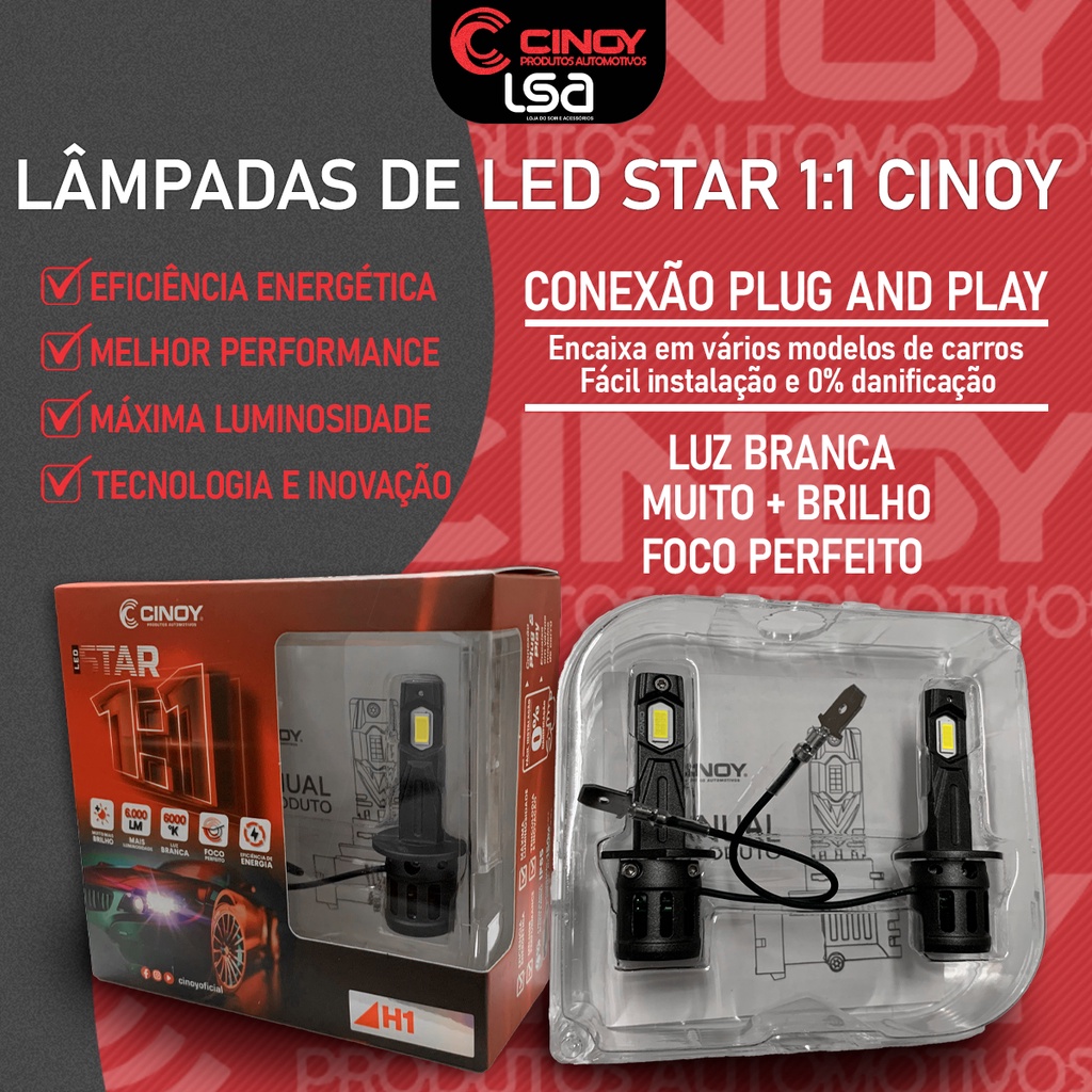 Lâmpada Cinoy Super Branca LED Star Mini 1:1 Encaixe Original 6000K 6000LM