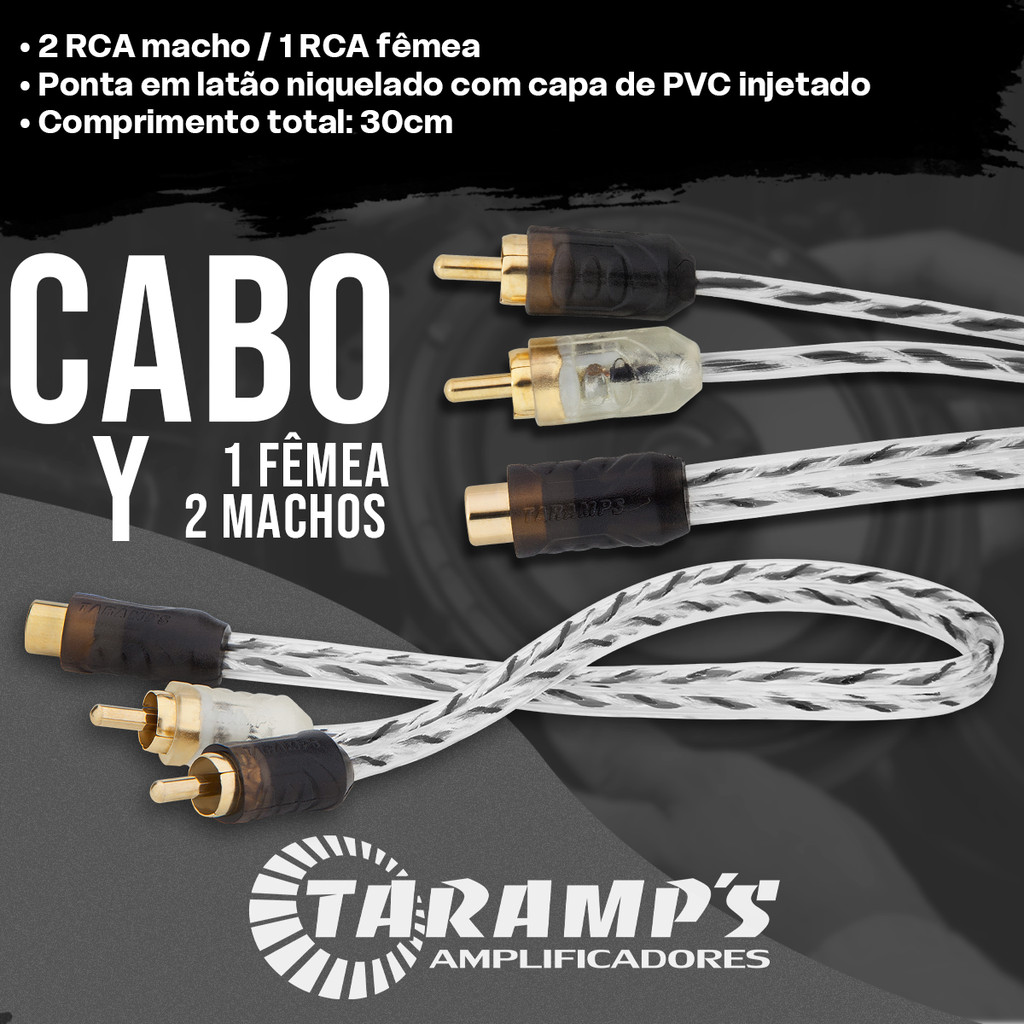 Cabo RCA Y 1 Fêmea 2 Machos Injetado Flexível Transparente Taramps Stereo Para Carro Som Automotivo