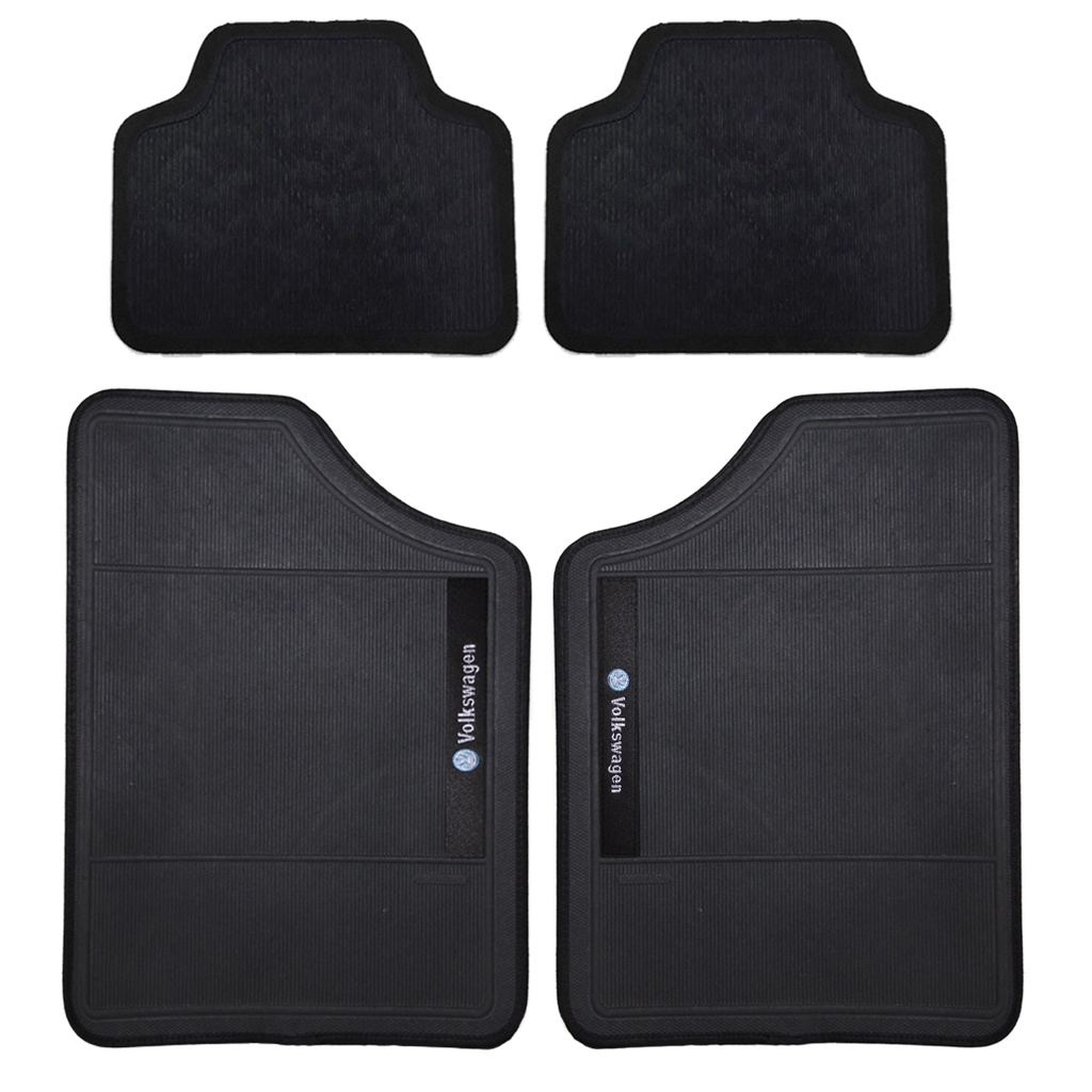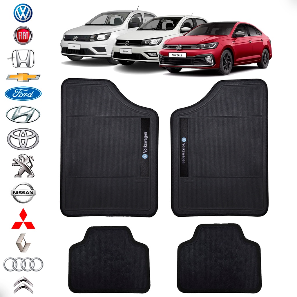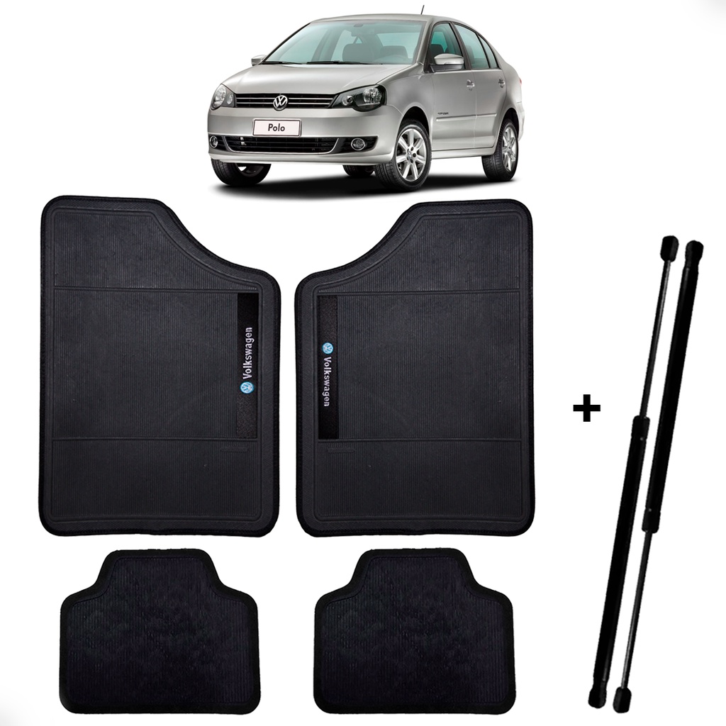 Tapete Automotivo 4 Peças Bordado Volkswagen + Par de Amortecedor Porta Malas Carro Polo Sedan