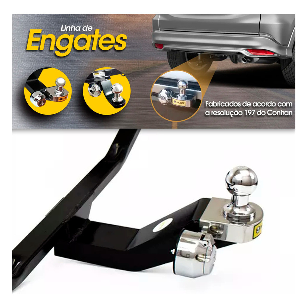 Engate Mult Argo 2017-2025 400Kg Tração Sem Furo com Bola 50mm e Tomada Elétrica para Reboque e Proteção