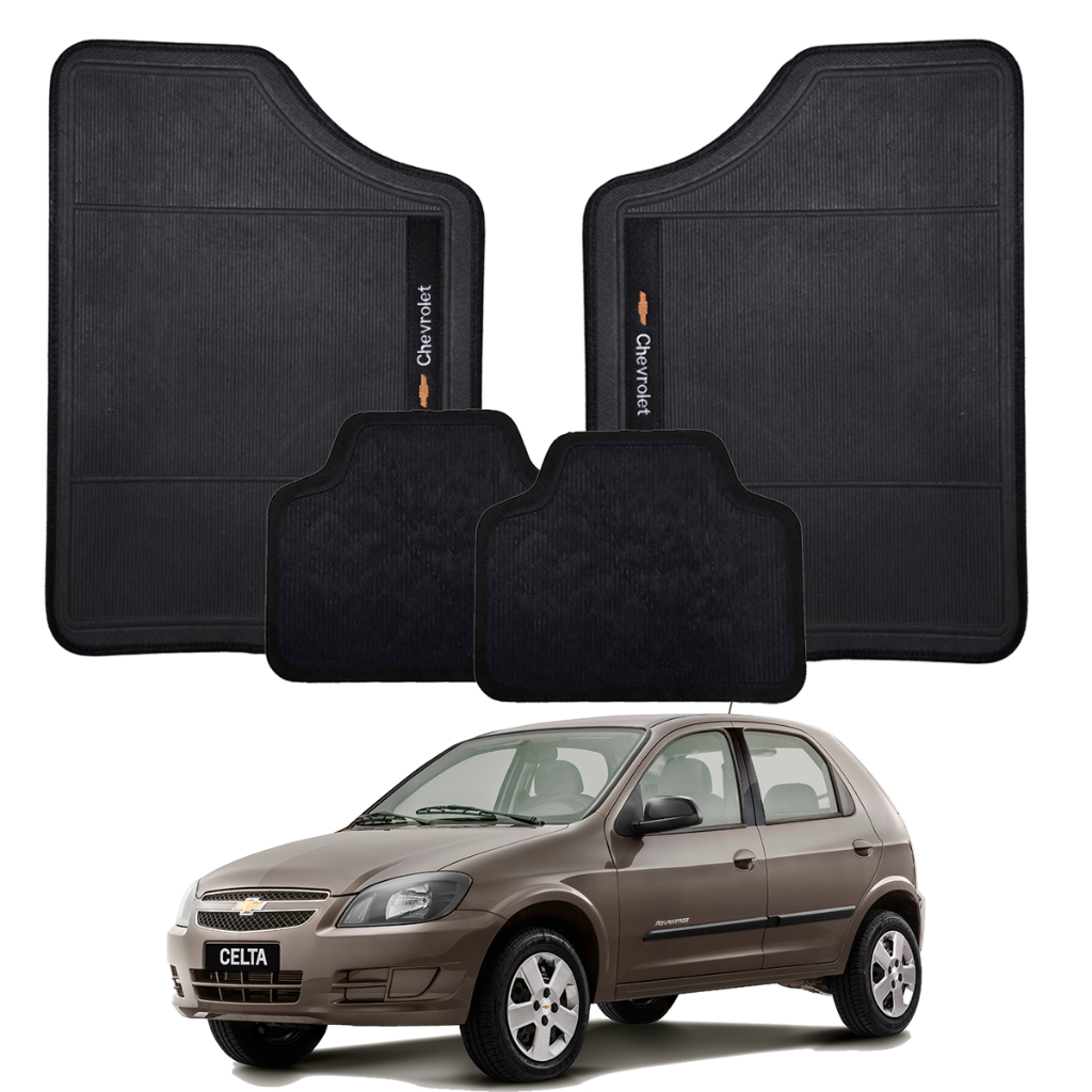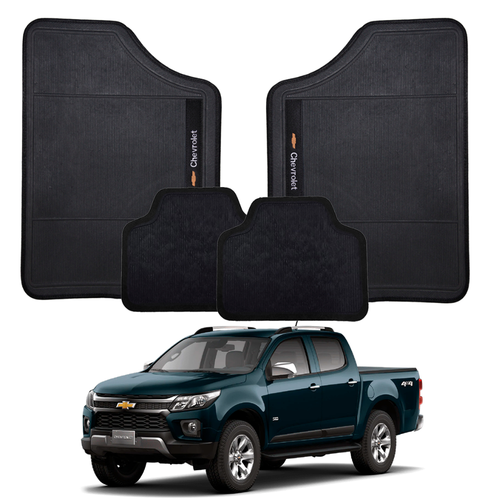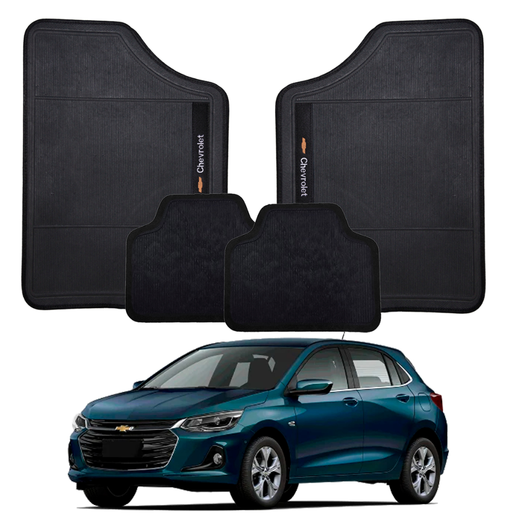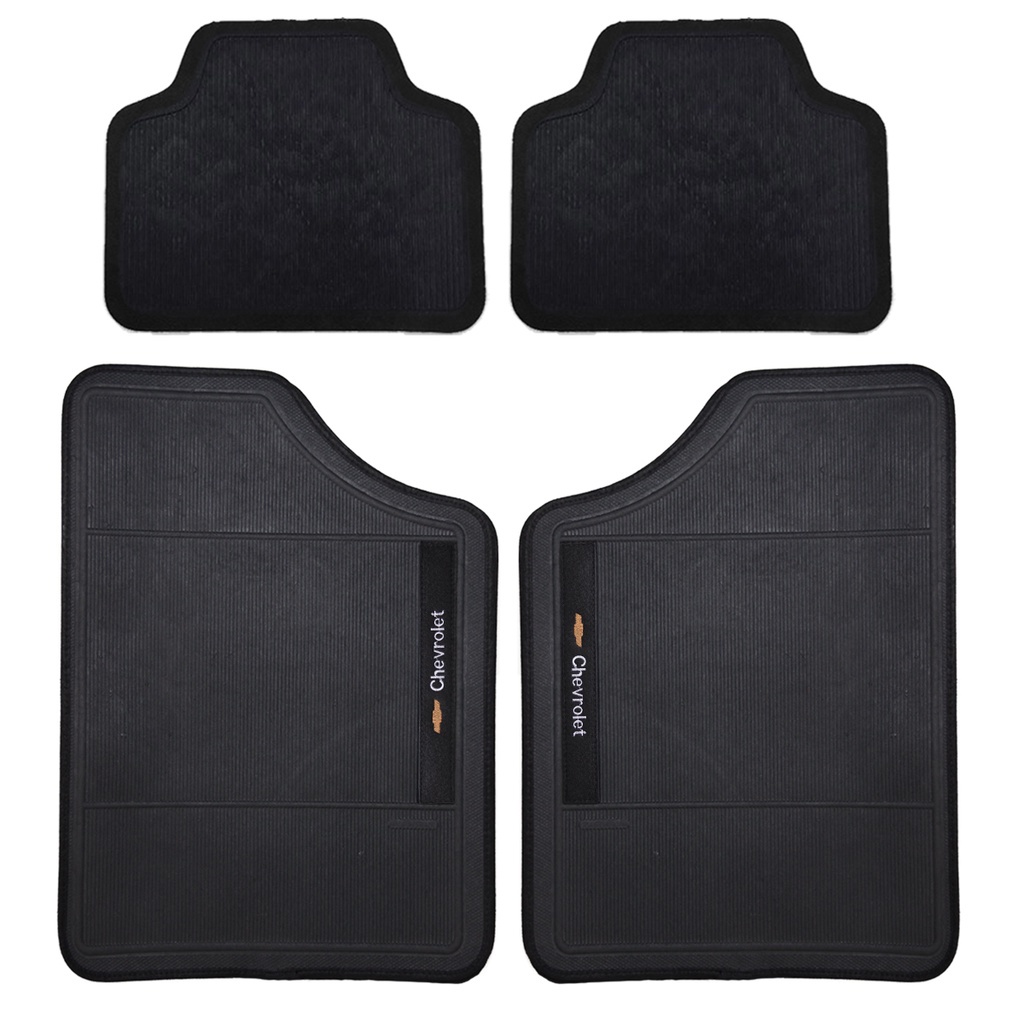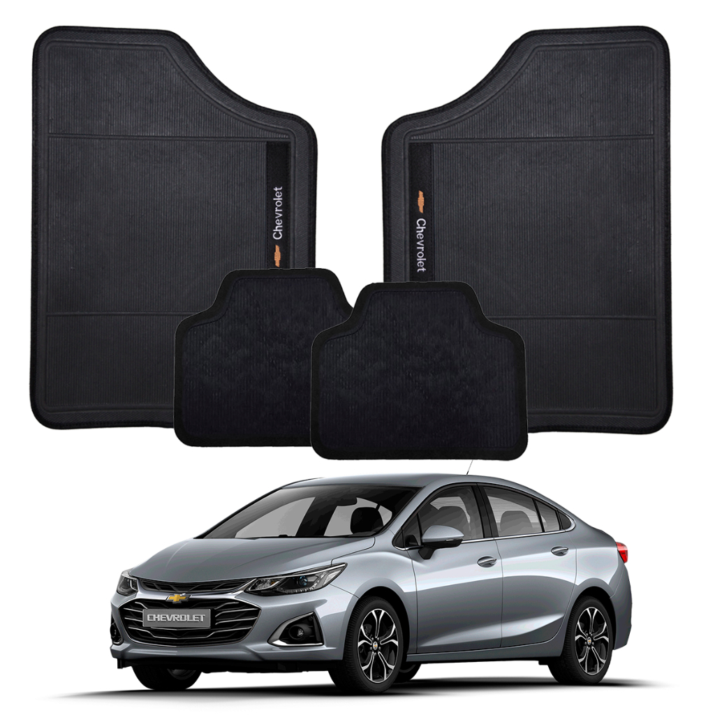 Conjunto de Tapete Para Carro Preto Marca Chevrolet 4 Pçs Otimizado Emborrachado Bordado