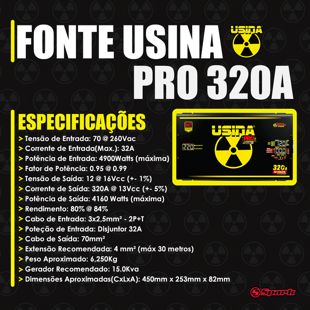 Fonte Usina PFC Pro Edition Full Range/PFC Carregadora de Bateria Automotiva 320A 12 Volts