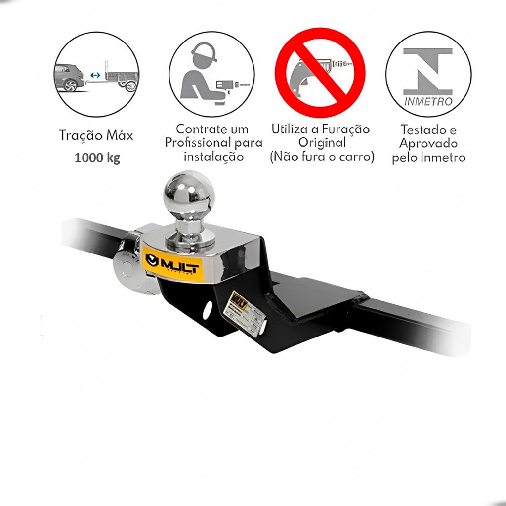 Engate Reboque Fixo Mult Chevrolet S10 LT LTZ 4X2 4X4 com Bola 50mm Capa Protetora Tomada Elétrica Plaqueta Técnica