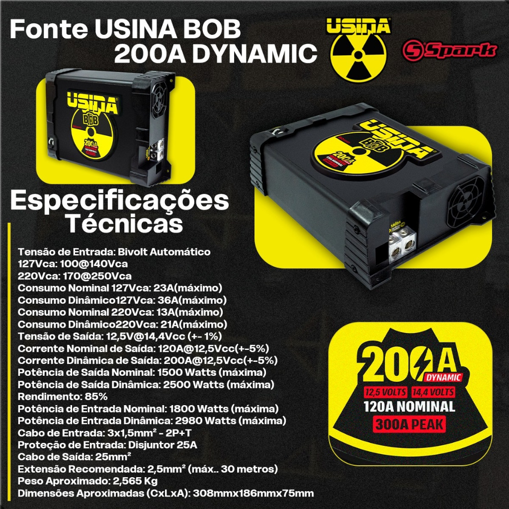Fonte Usina Automotiva BOB 200A - P/ Caixas BOB - Bivolt Automática Dynamic Lançamento