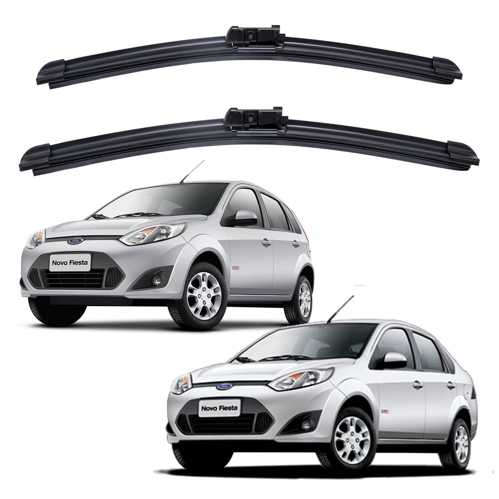 Par Palheta Limpador Para-brisa de Gancho p/ Carro Ford Fiesta Rocam Sedan 2002 A 2013 Kit