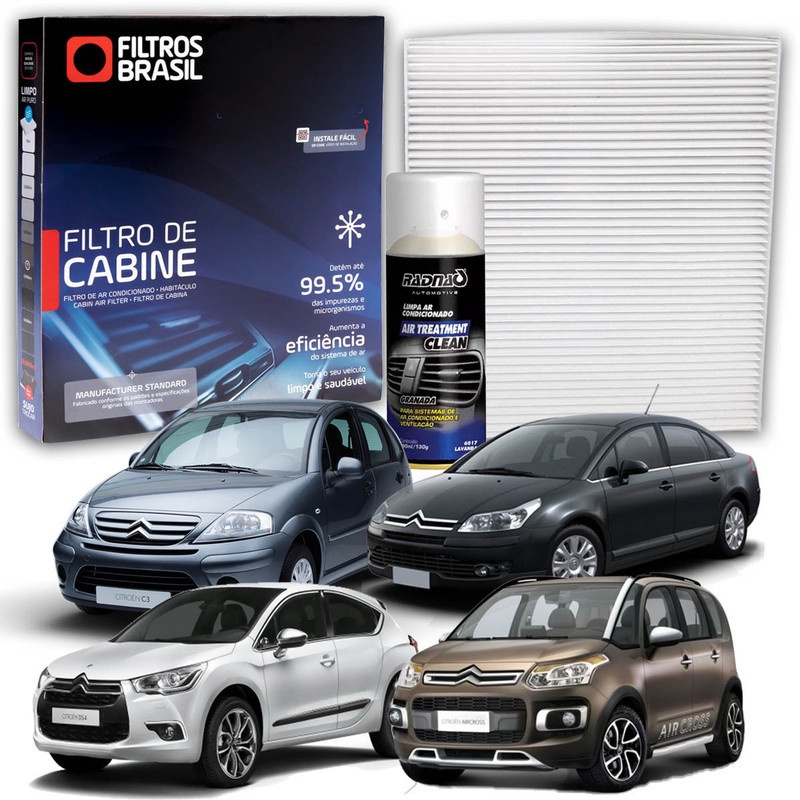 Filtro de Cabine para Ar Condicionado Citroen C3/C4 AirCross + Higienizador Limpa Ar Tipo Granada