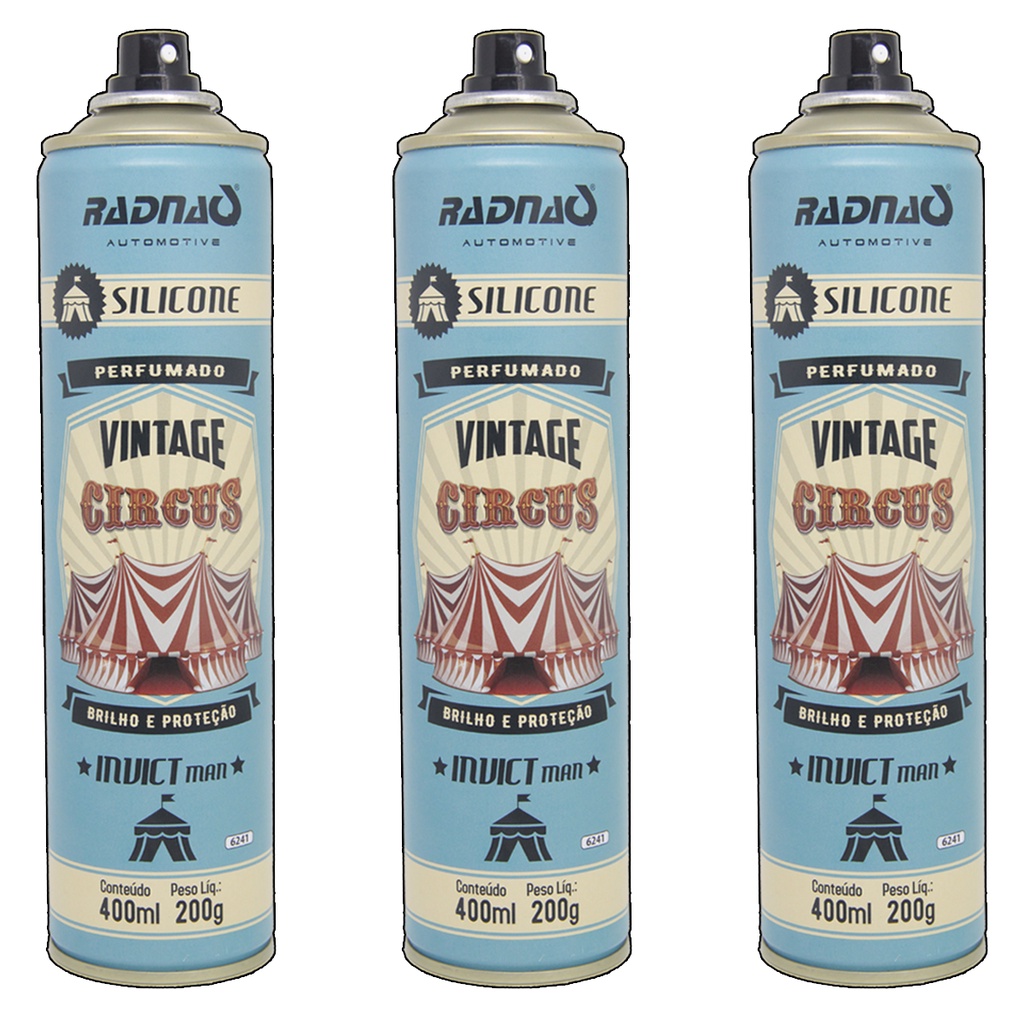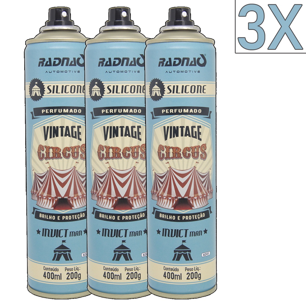 Kit 3 Unidades Silicone Spray Perfumado Vintage Circus Invict Radnaq 400mL