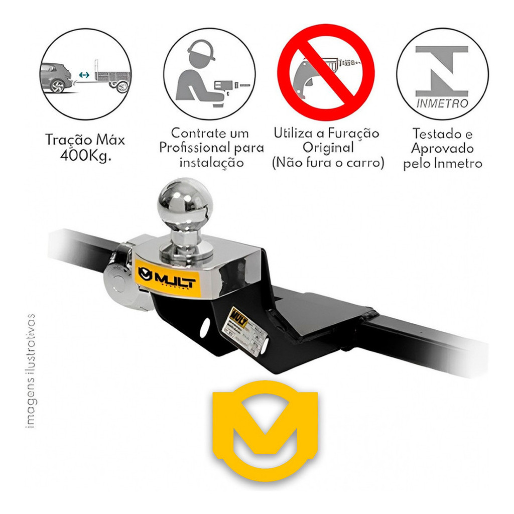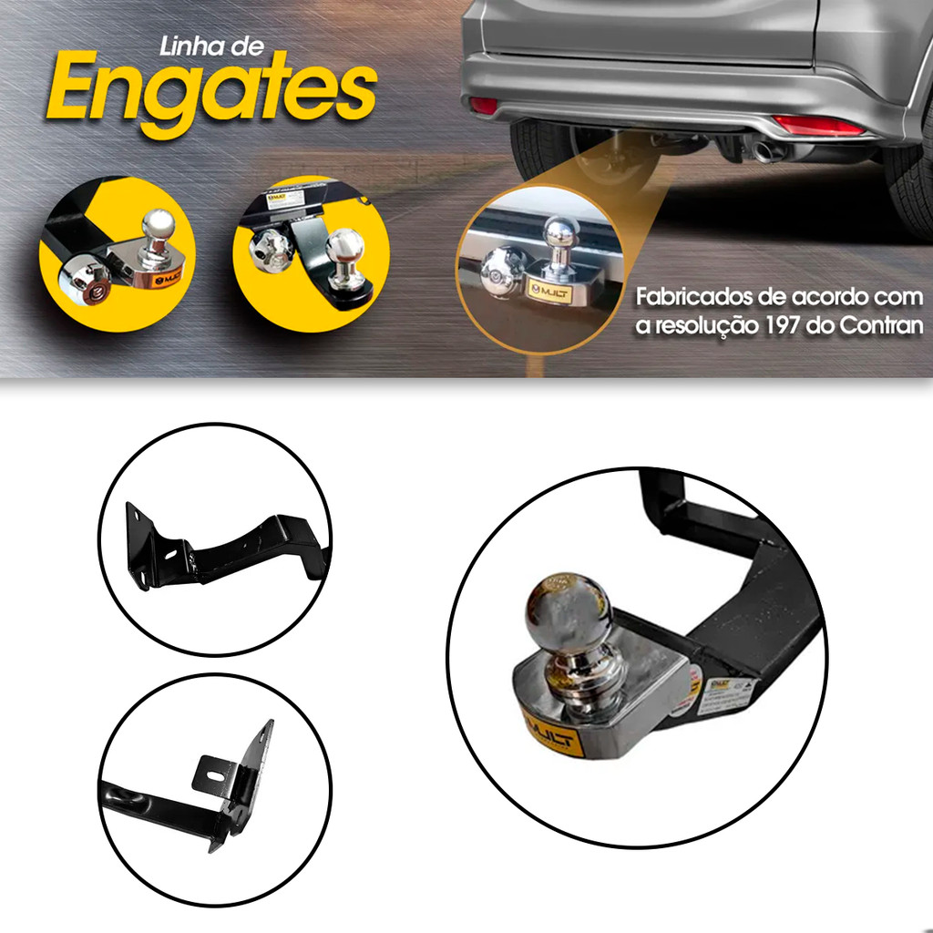 Engate Reboque Polo 2018-2025 400Kg Aço Resistente com Bola 50mm e Capa Cromada para Carretinhas e Proteção