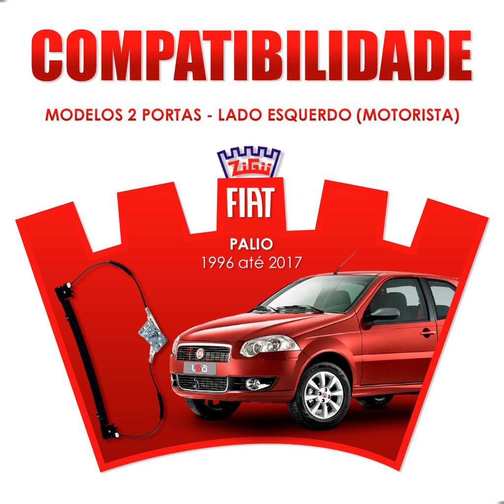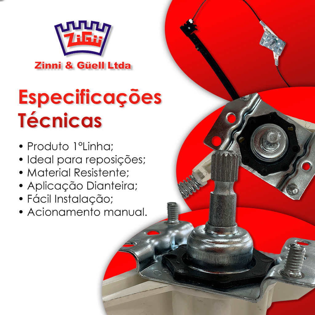 Máquina Vidro Lado Esquerdo Dianteira Motorista Manual Palio 1996-2017 Strada 98+ 2 Portas Zinni & Güell