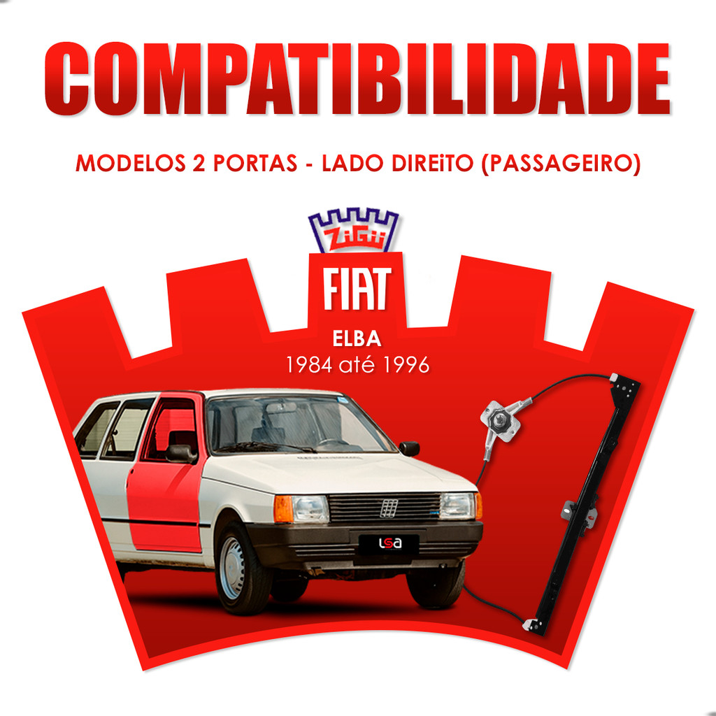 Elevador de Vidro Manual Fiat Uno Economy Prêmio Elba Direito Passageiro Modelos 1984 a 2013 Modelos 2 Portas