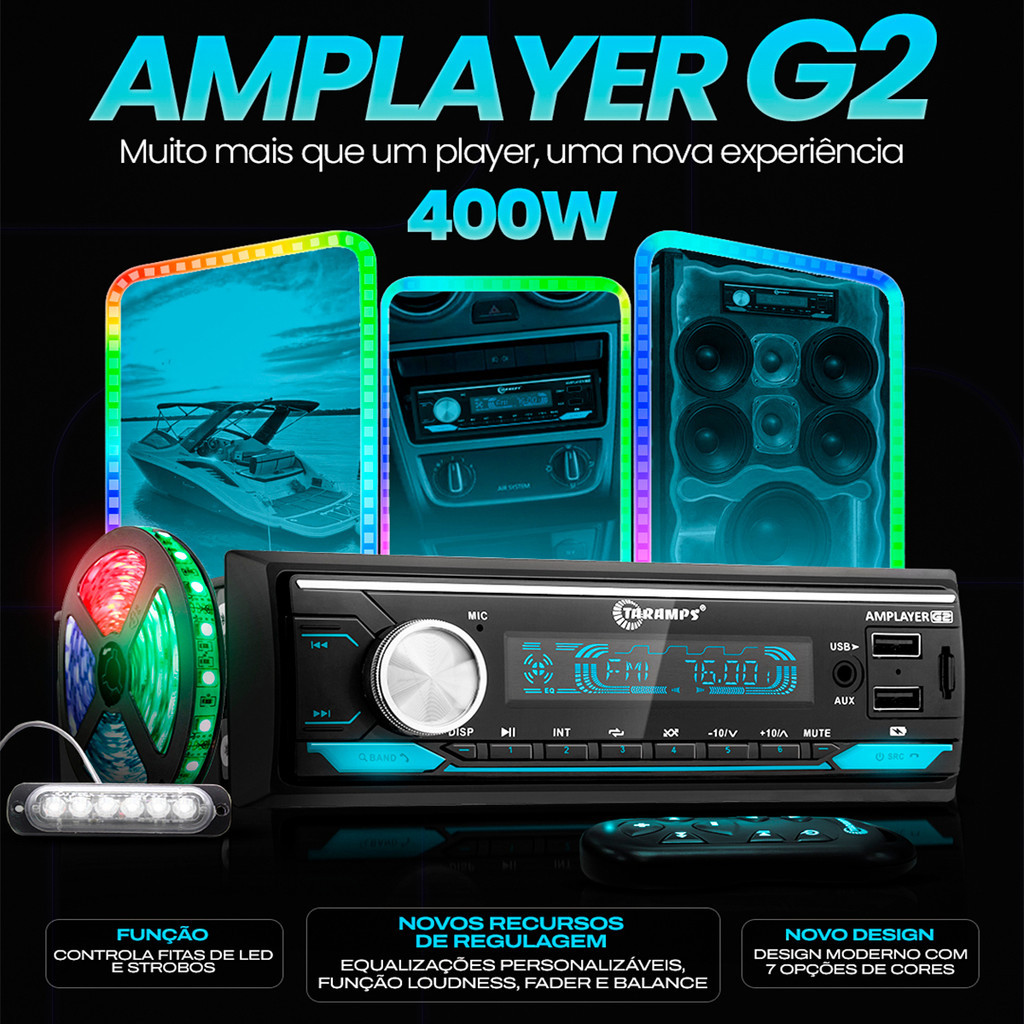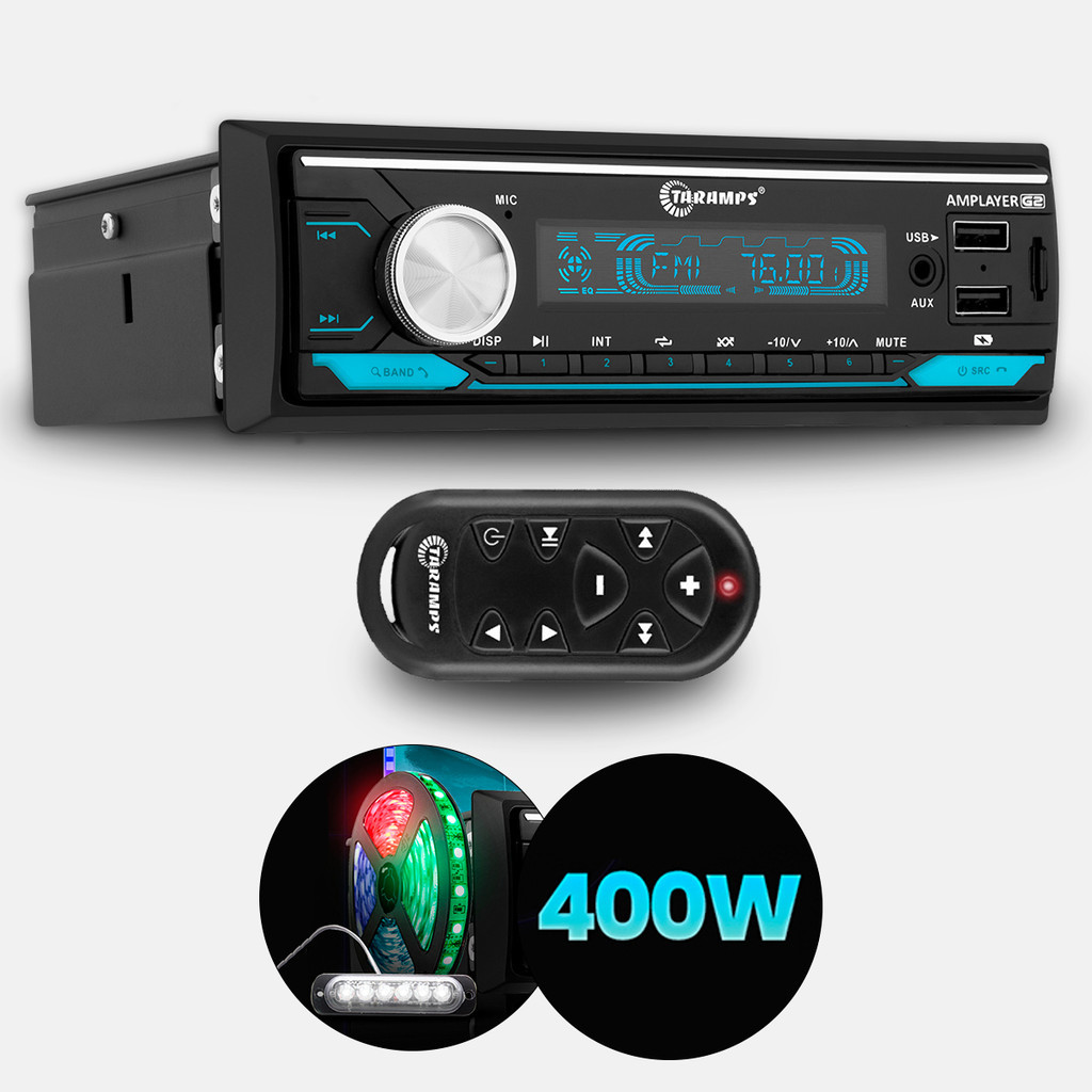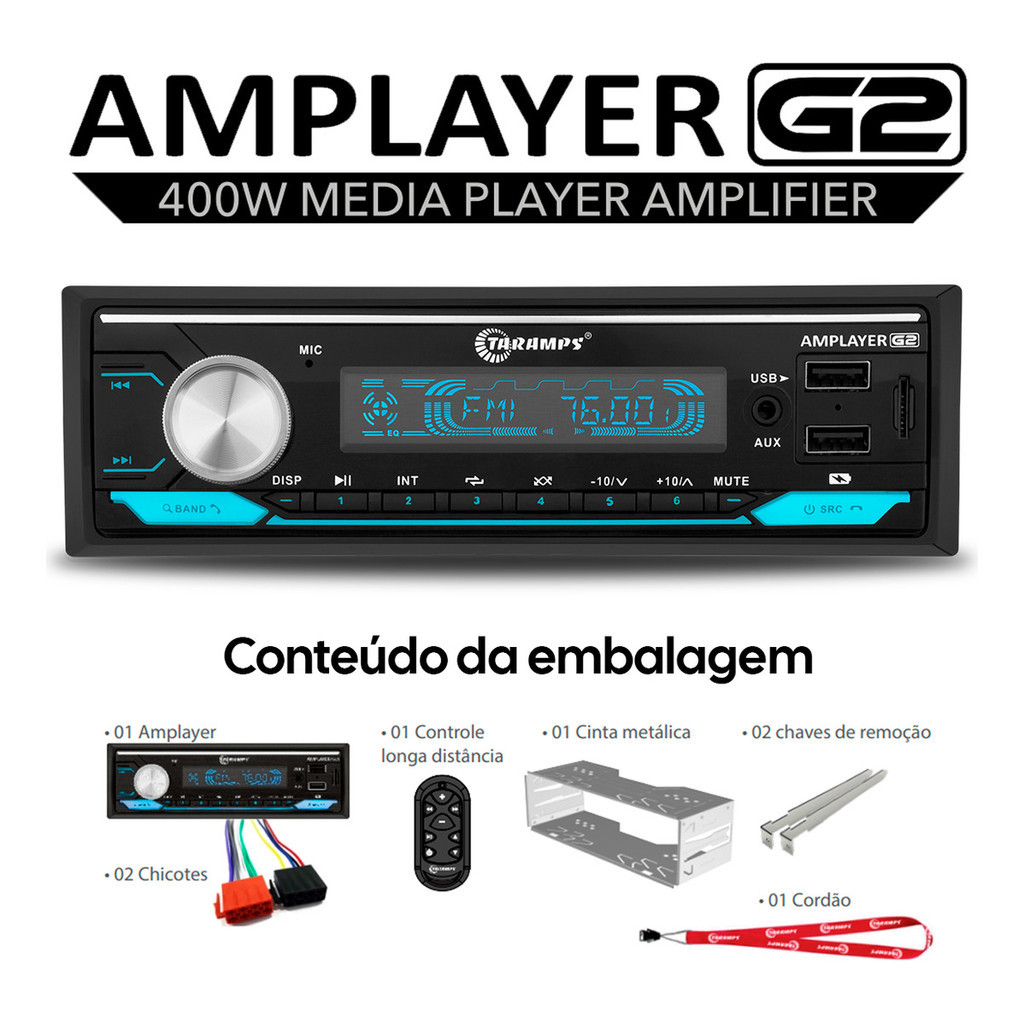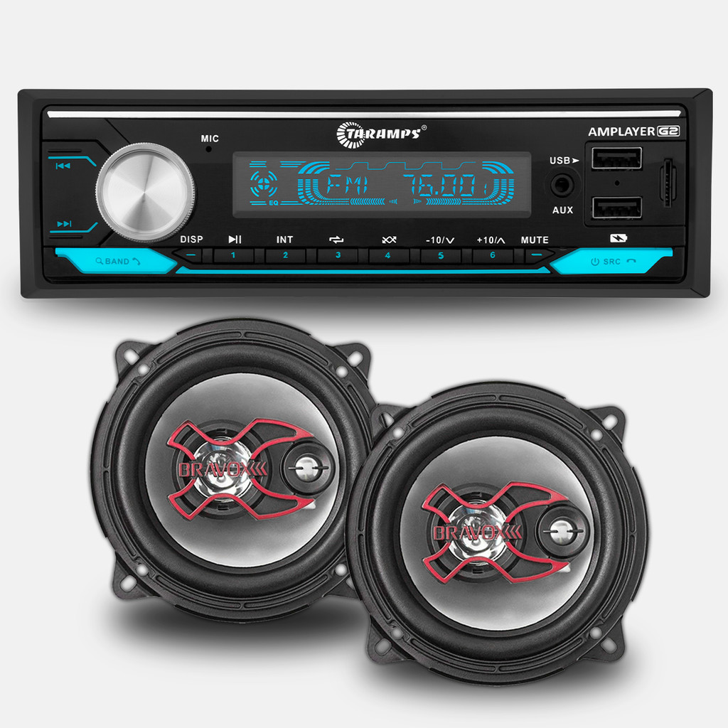 Rádio Taramps Amplayer G2 4x100W + 2 Alto Falantes de 6 Polegadas Bravox Triaxial B3X50X