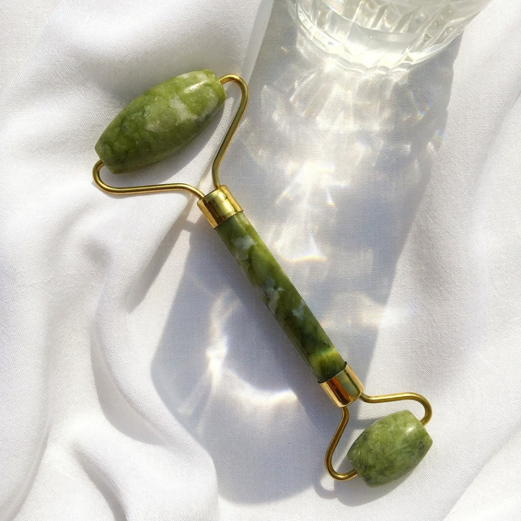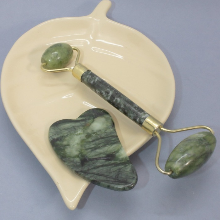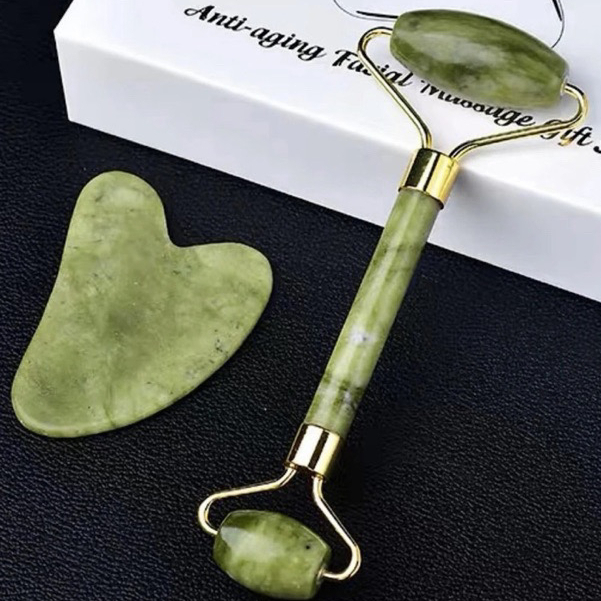Rolinho de Pedra de Jade e Placa Gua Sha para Massagem Facial Anti Ruga