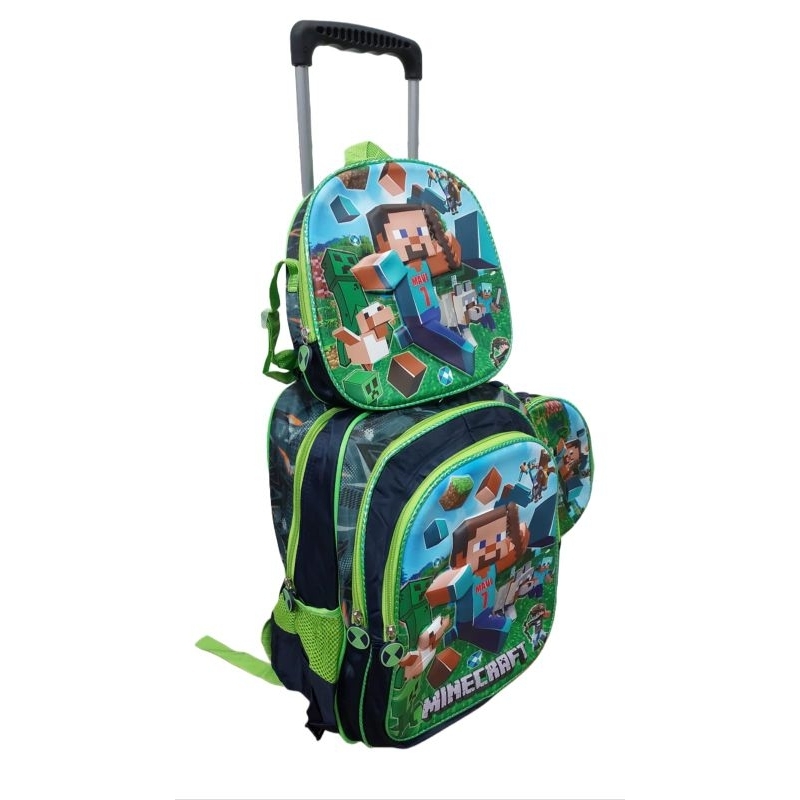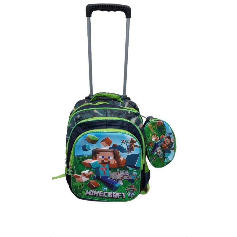 kit mochila escolar rodinhas 3D masculino Minecraft
