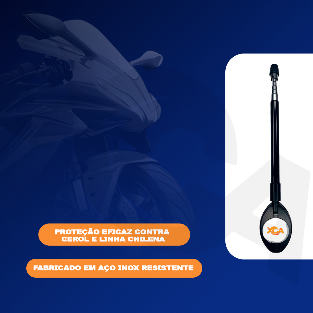 Antena Corta Retrátil Pipa Aço Inox Reforçado Para Moto – 7 Estágios Anti-Cerol, Fixação no Guidão