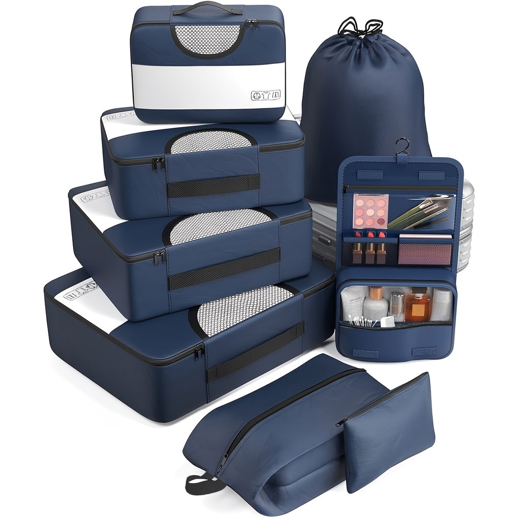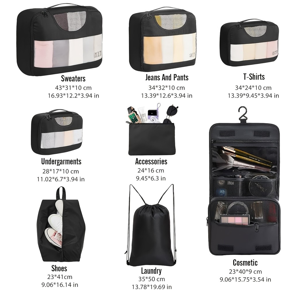 Kit 8peças Conjunto De Bolsas De Compressão Oxford Acessórios De Mala Armazenamento De Roupas Rajork