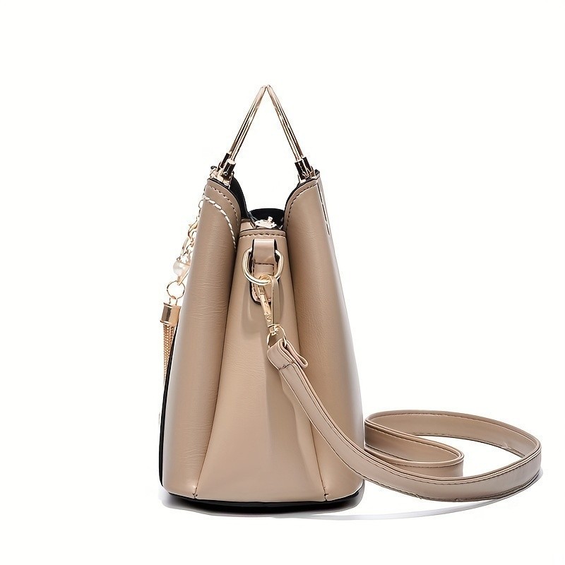 Bolsa Tote Colorblock Simples Feminina de Ombro Clássica Elegante Moderna com Pingente de Borla Rajork