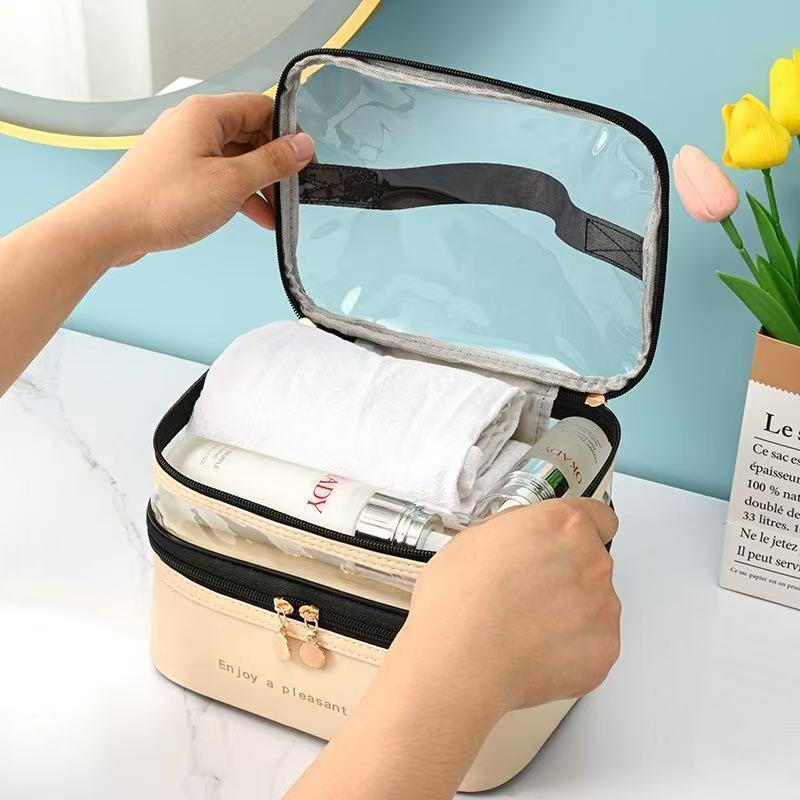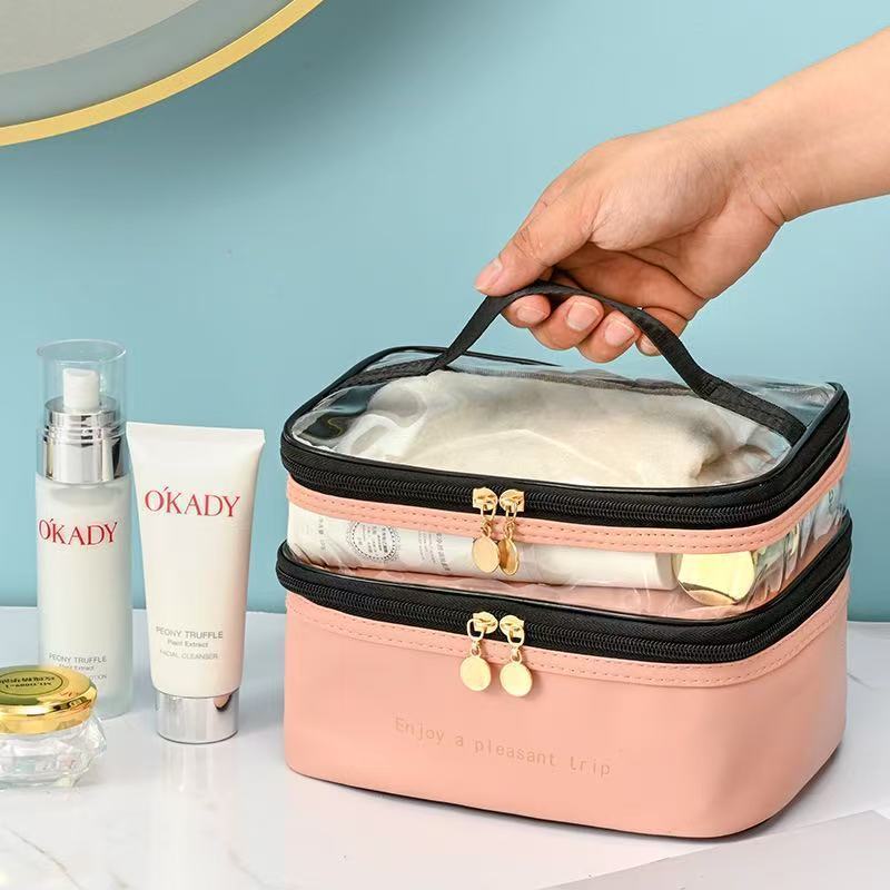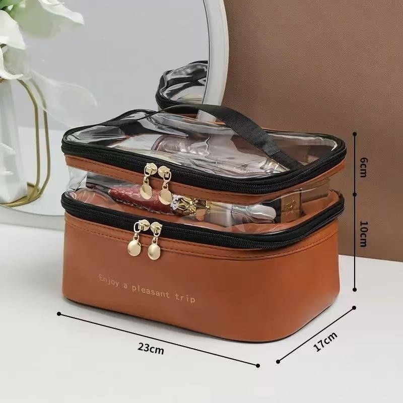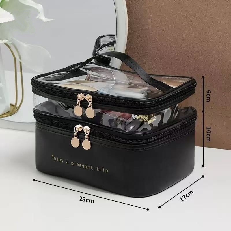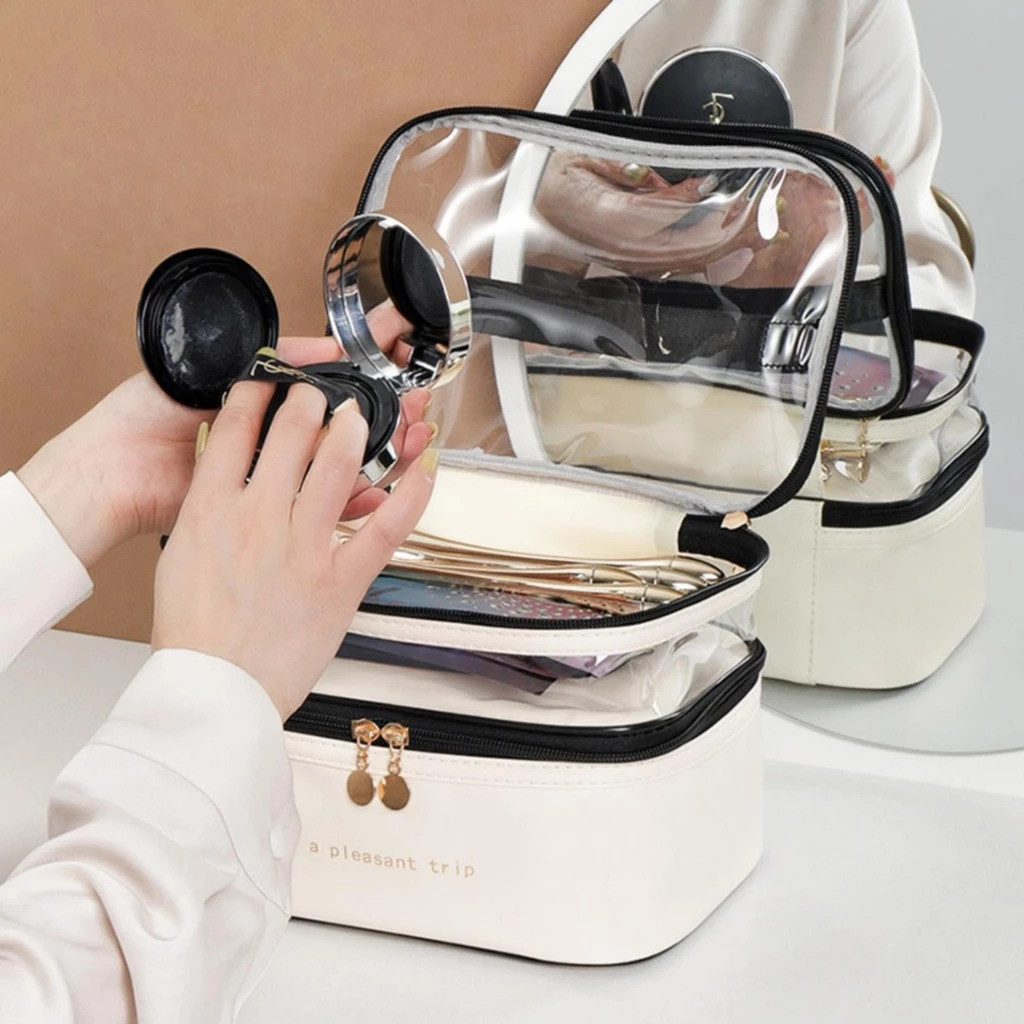 Necessaire Camada Divisória Dupla Organizador Cosmetico Transparente A Prova de Água Portátil Viagen Grande Capacidade