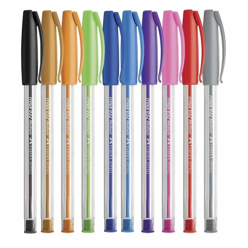 Kit Caneta Faber Castell Trilux 10 Cores 1.0mm Esferográfica Escolar Colorida