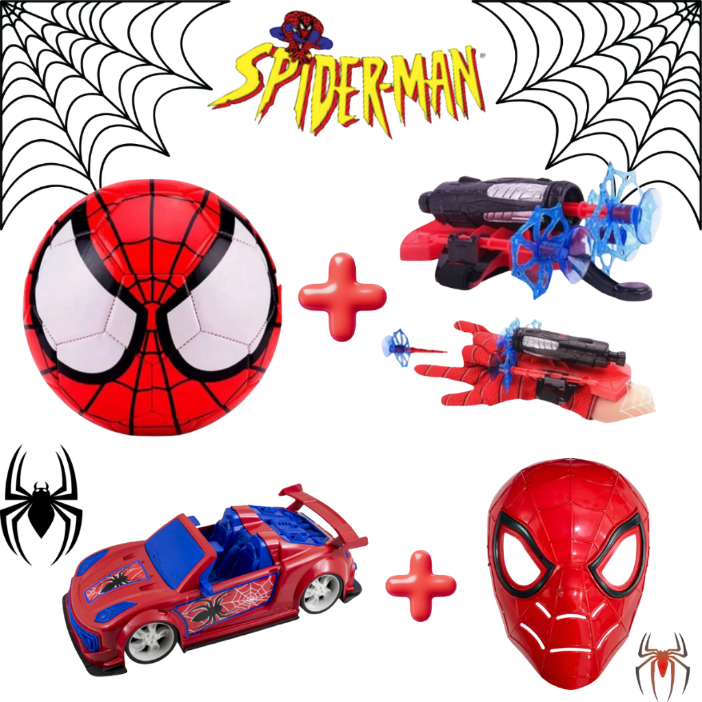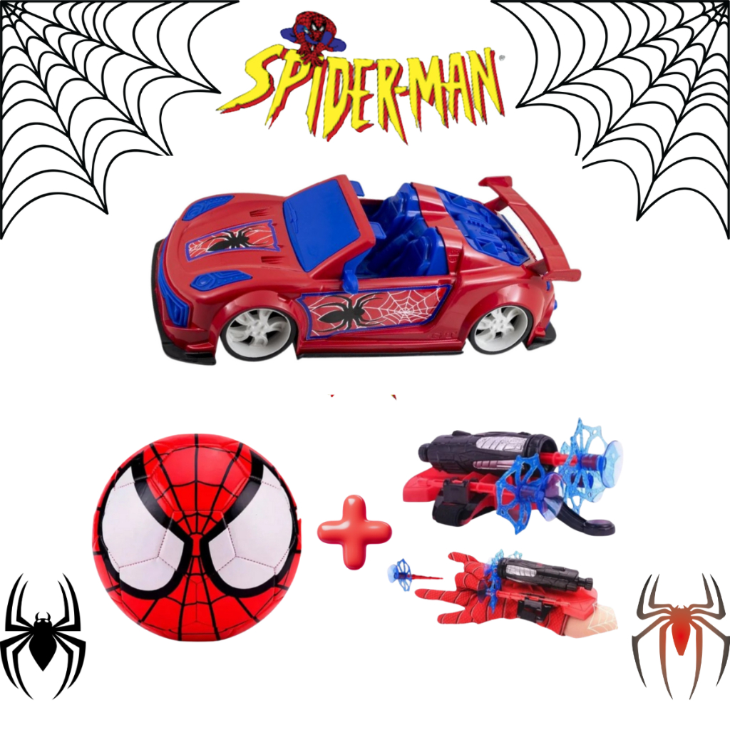 Kit Homem Aranha Spider Completo Carro Porsche Bola Luva Lançadora Máscara Brinquedo Brionquedo Infantil Diverção Certa