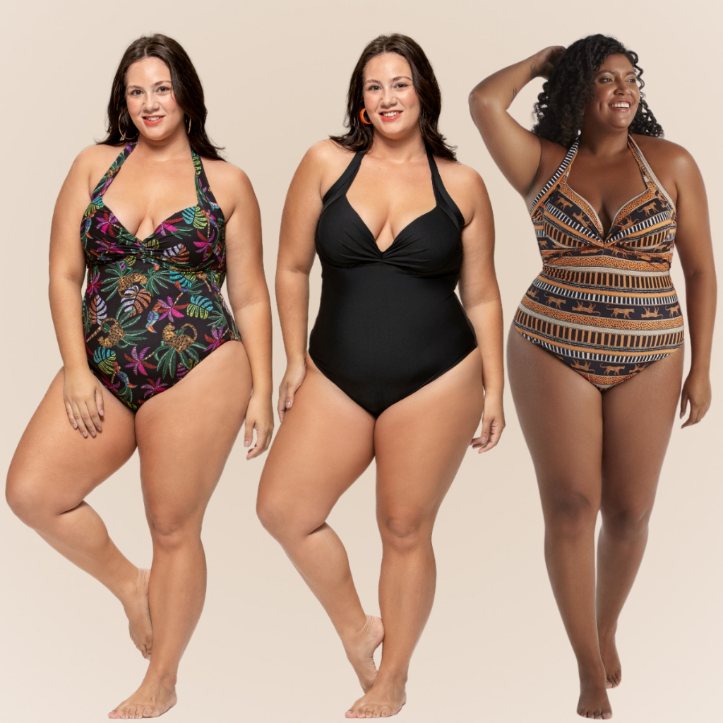 Maiô Arsiè Plus Size Estampado com Bojo Drapeado Alça Reforçada e Ajustável Moda Praia Confortável