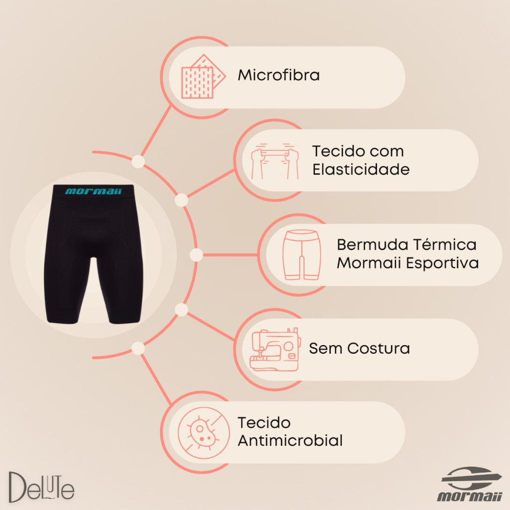 Bermuda Térmica Adulta Mormaii Sem Costura Masculina Alta Performance Resistente Anti Assaduras