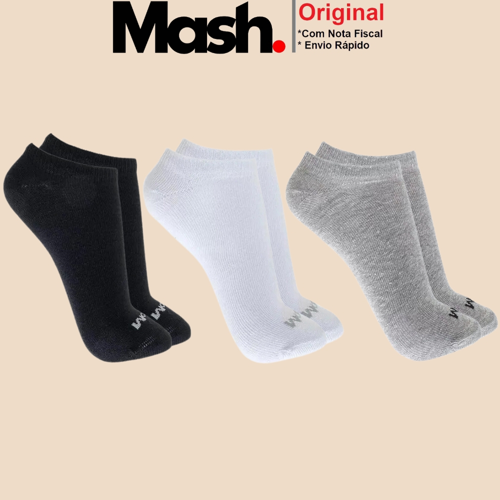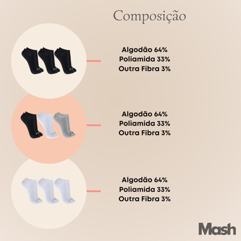 Kit Com 3 Pares de Meias Sport Mash Cano Curto em Algodao Unissex Para Corrida Caminhada