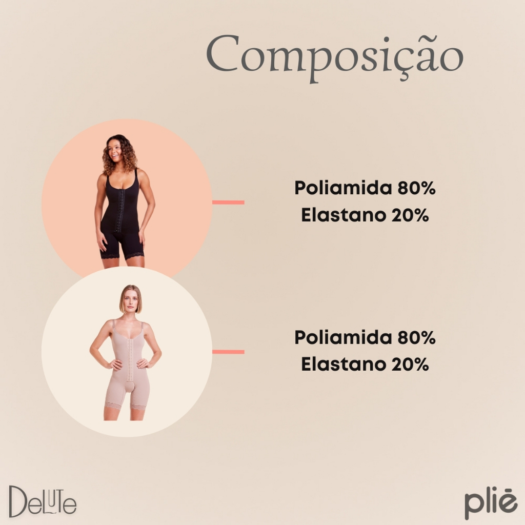 Macaquinho Pós Cirúrgico Estético Plié Modelador Feminino de Alta Compressão Emana Detalhe Rendado