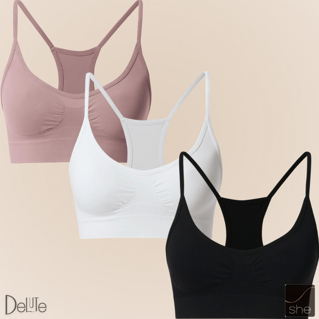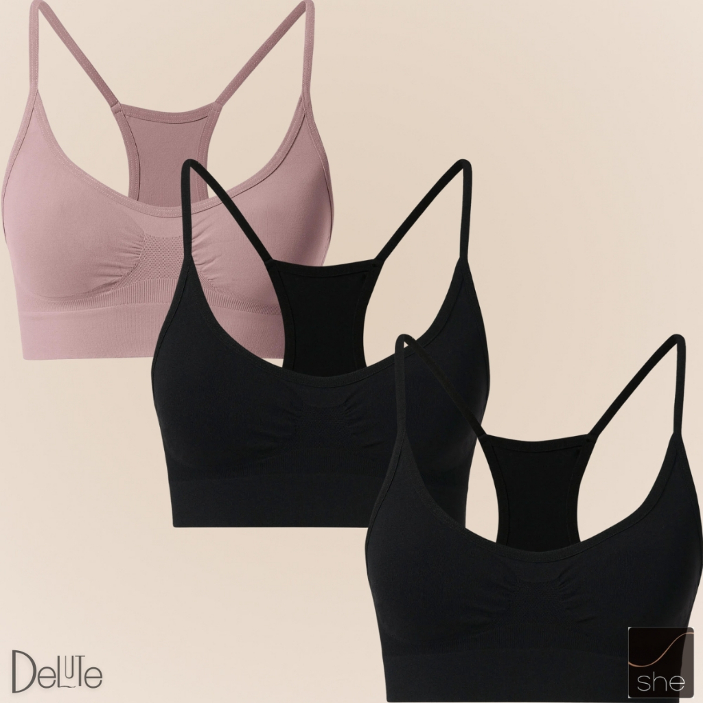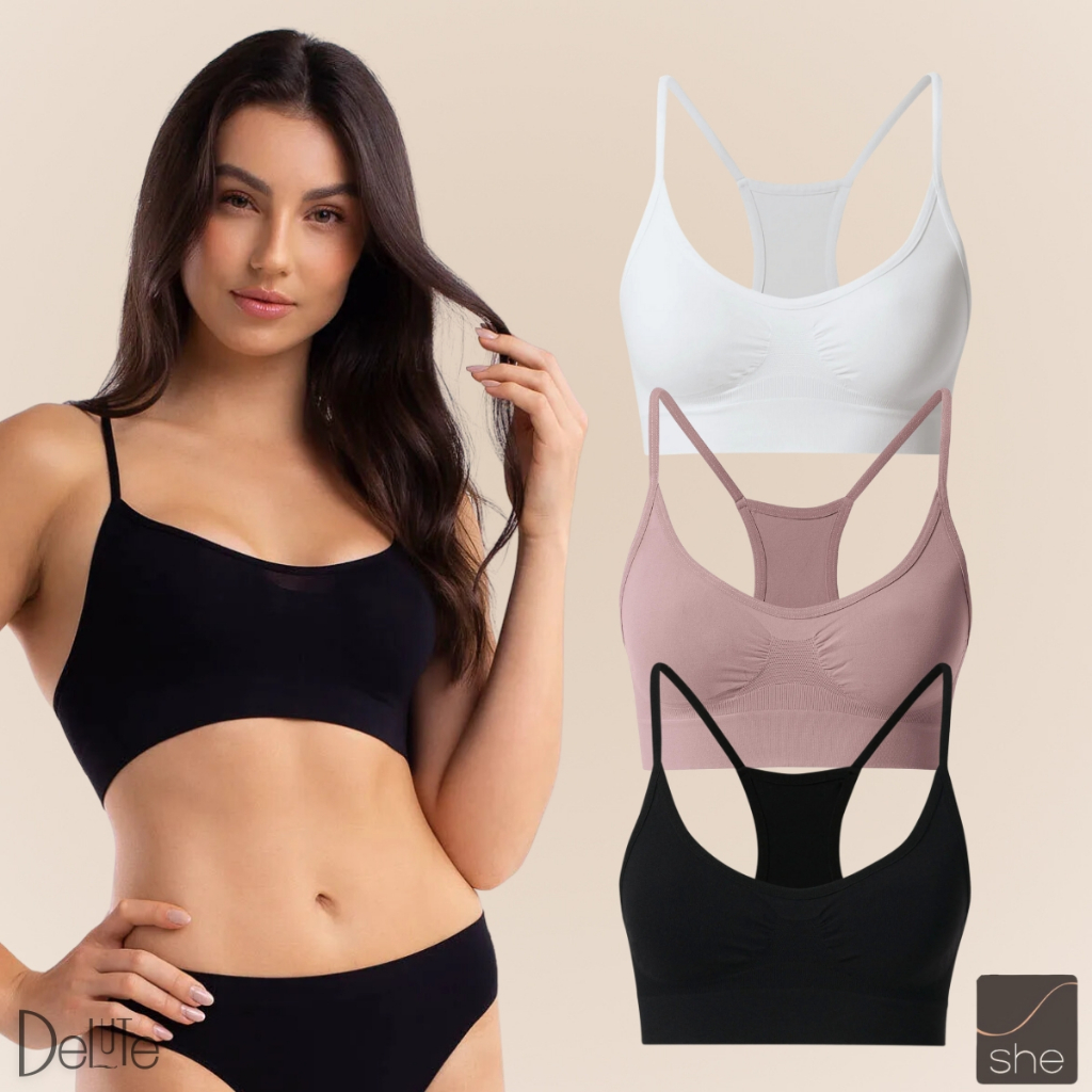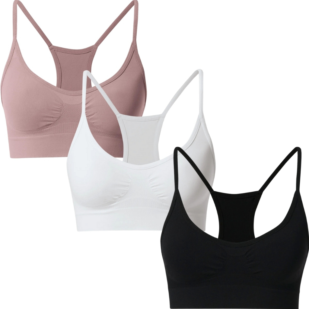 Kit 3 Top Fitness Sport Nadador SHE Em Microfibra Sem Costura Sem Bojo Para Exercicios P ao GG