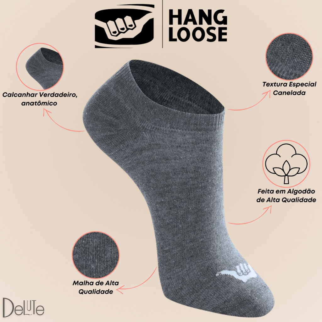 Kit com 3 Pares de Meias Esportiva Lisa Modelo Invisível Hang Loose Calcanhar Verdadeiro Básica