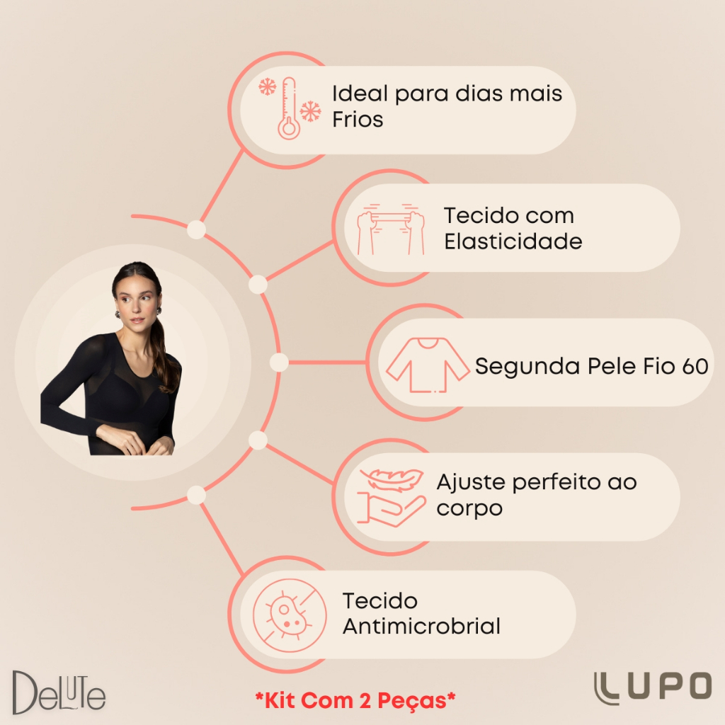 Kit 2 Blusas Segunda Pele Lupo Feminina Clássica Fio 60 Com a Gola Redonda Aderente Confortável Básica