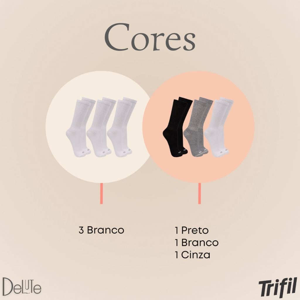 Kit com 3 Pares de Meias Trifil Esportiva Lisa Modelo Cano Longo Calcanhar Verdadeiro Básica Sport